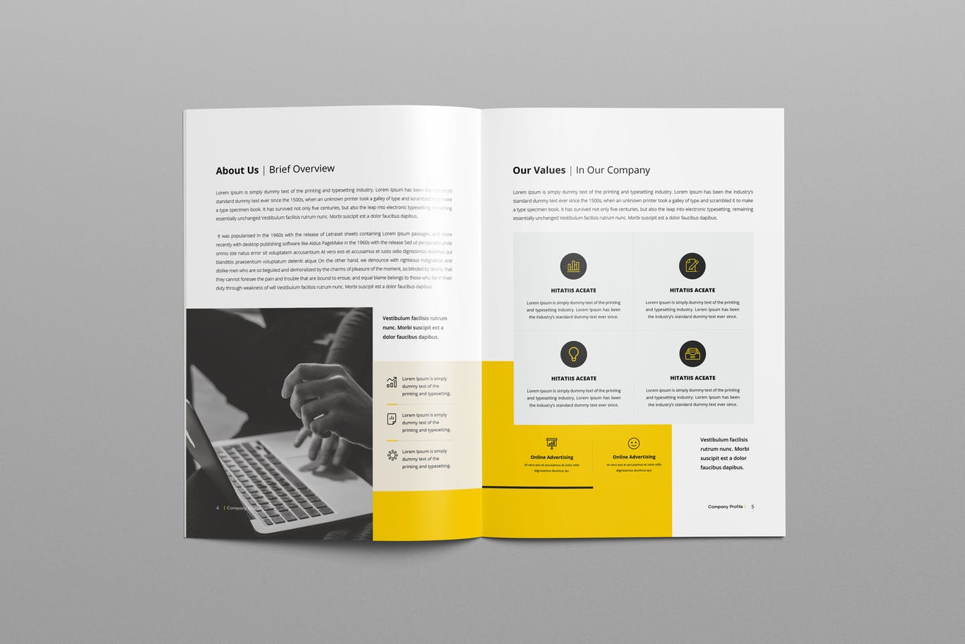 这次分享的是,黄色简约2022年公司简介画册品牌手册宣传册杂志设计模板,专业,干净,现代的16页公司简介2022模板。只需放入您自己的图片和文字,即可进行打印。或将其用作专业的在线PDF或电子邮件附件。该手册可以用于多种目的。它非常适合作为企业形象宣传册–用于介绍您的业务,服务,最新案例等。或使用它来展示特定的产品。或完全不同的东西。您看到的所有内容都可以在Indesign中进行编辑。所有颜色都可以在一个位置轻松更改。所有文本均设置有免费字体。