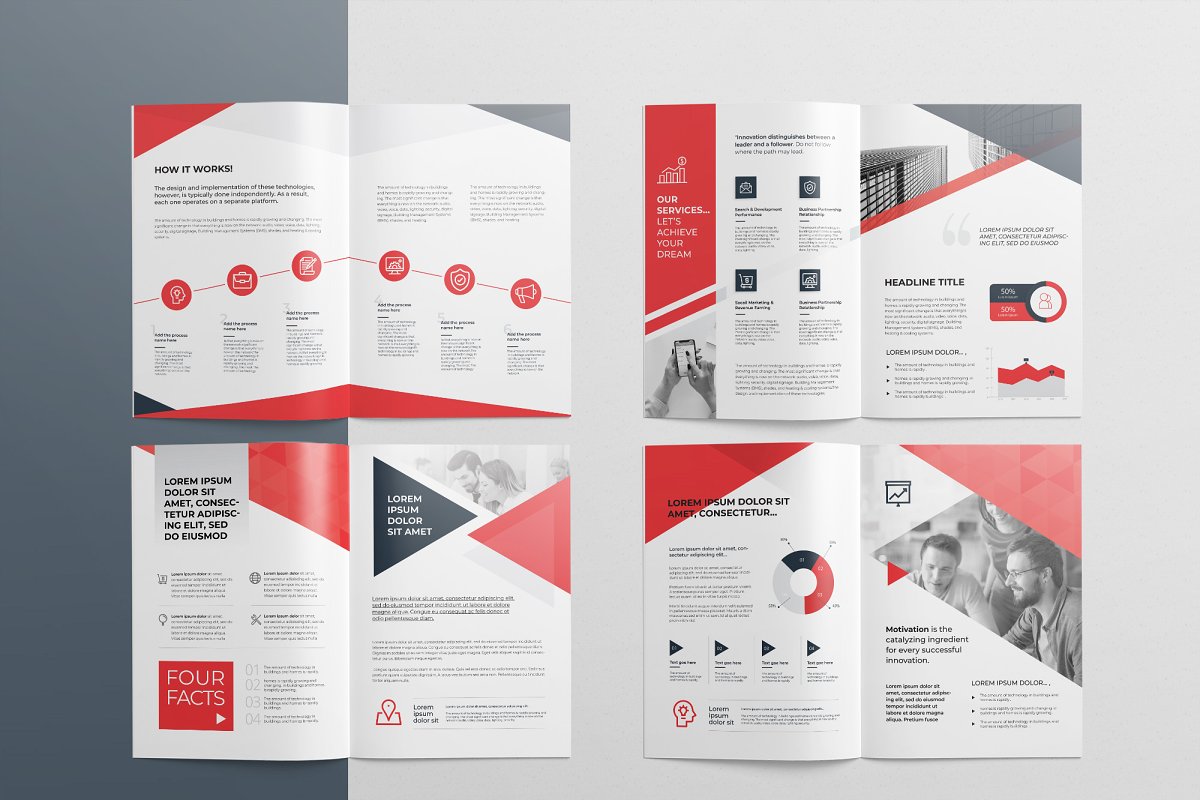 该宣传册模板结合了有吸引力的设计和业务专业精神,重塑了您的公司形象。其简约的布局和丰富的设计使您可以容纳大量内容,而不会牺牲质量或可读性。另一个很棒的功能是所有内容都是可编辑的,一键更改颜色即可。