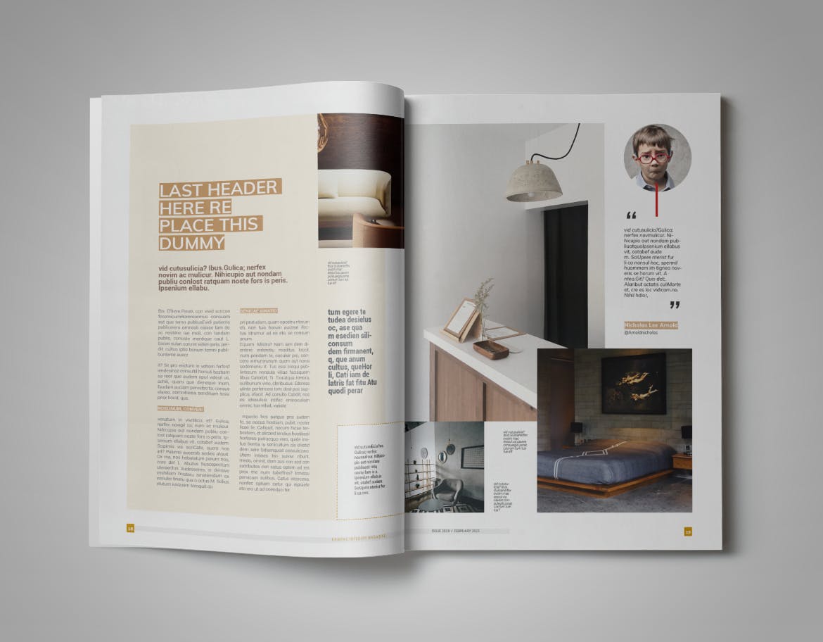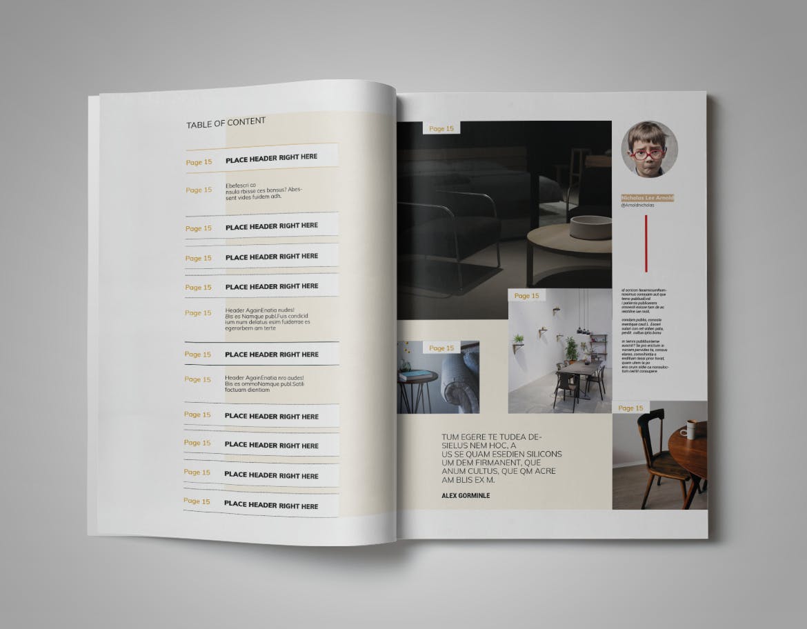 这次分享的是,家具杂志模板下载(indd),该文件井井有条,易于定制和编辑。 该模板使用Adobe InDesign格式设计,简约而优雅的设计。 每页都具有独特的版式和现代版式,然后是带有标题和描述的图像的许多版式。