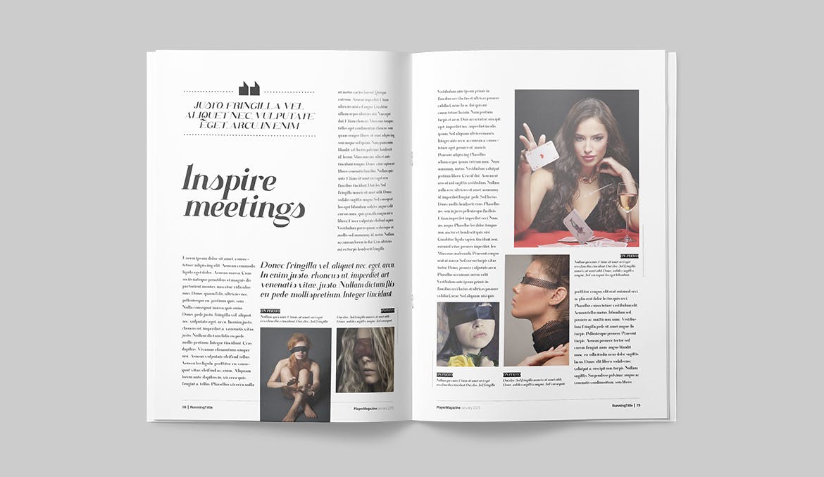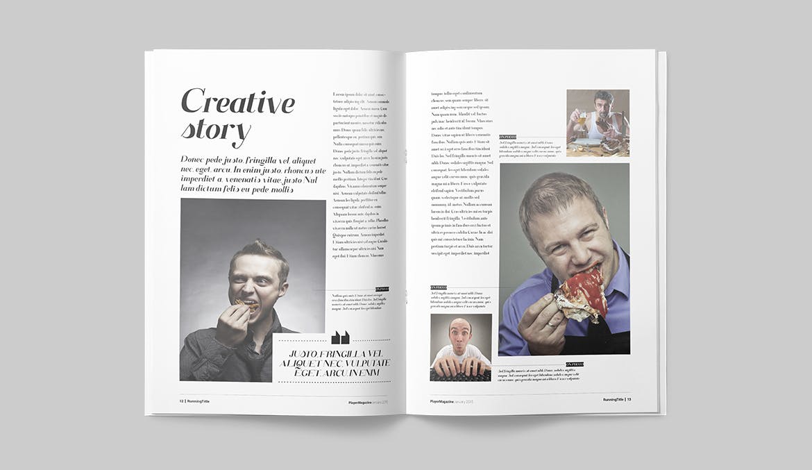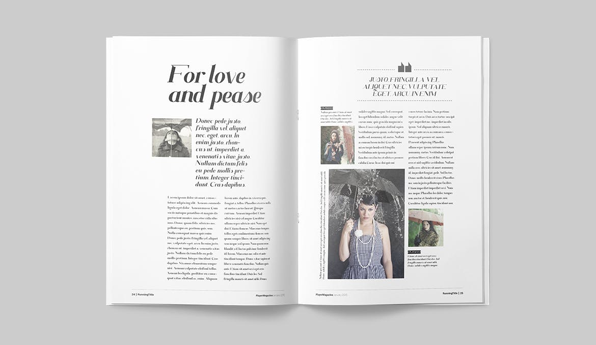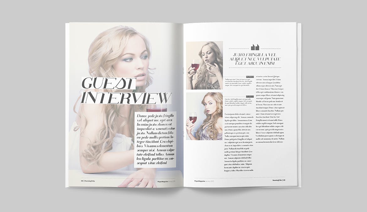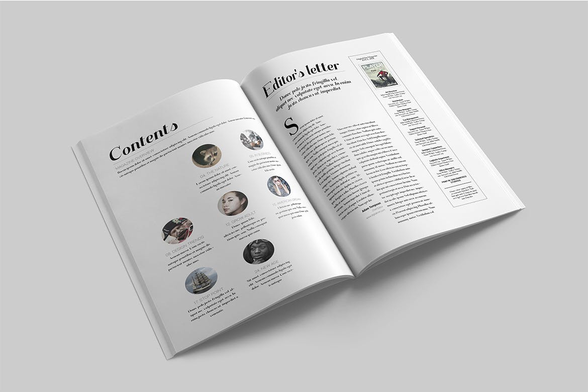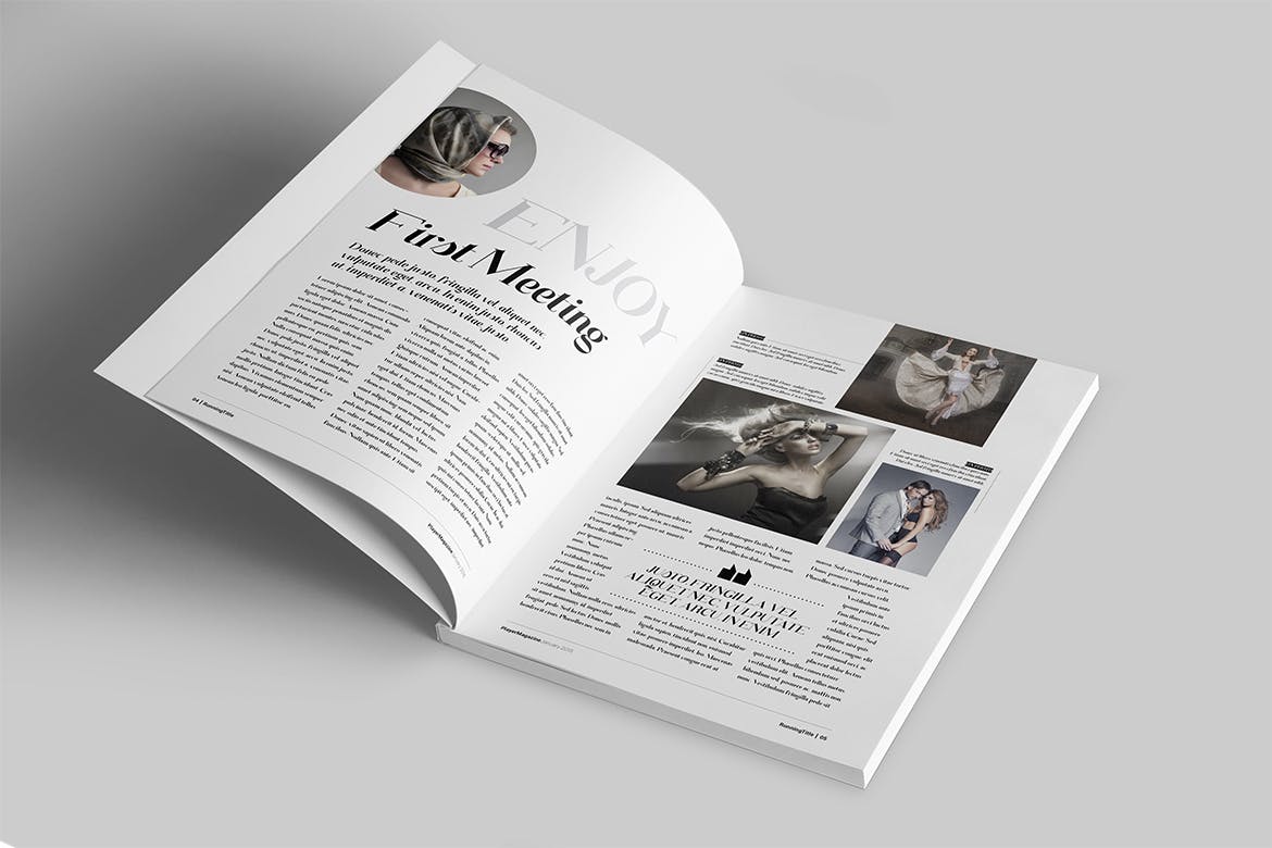 专业,干净的InDesign杂志模板。包括25页的文章,访谈,画廊和展示柜。所有文本均可编辑,并带有图像占位符。文件已准备好打印并带有出血。所有文本均设置有免费字体,并提供下载链接。