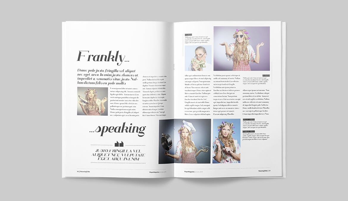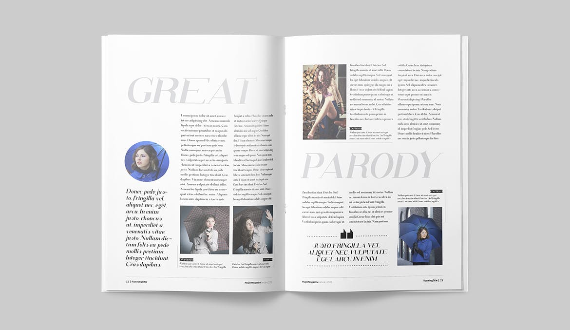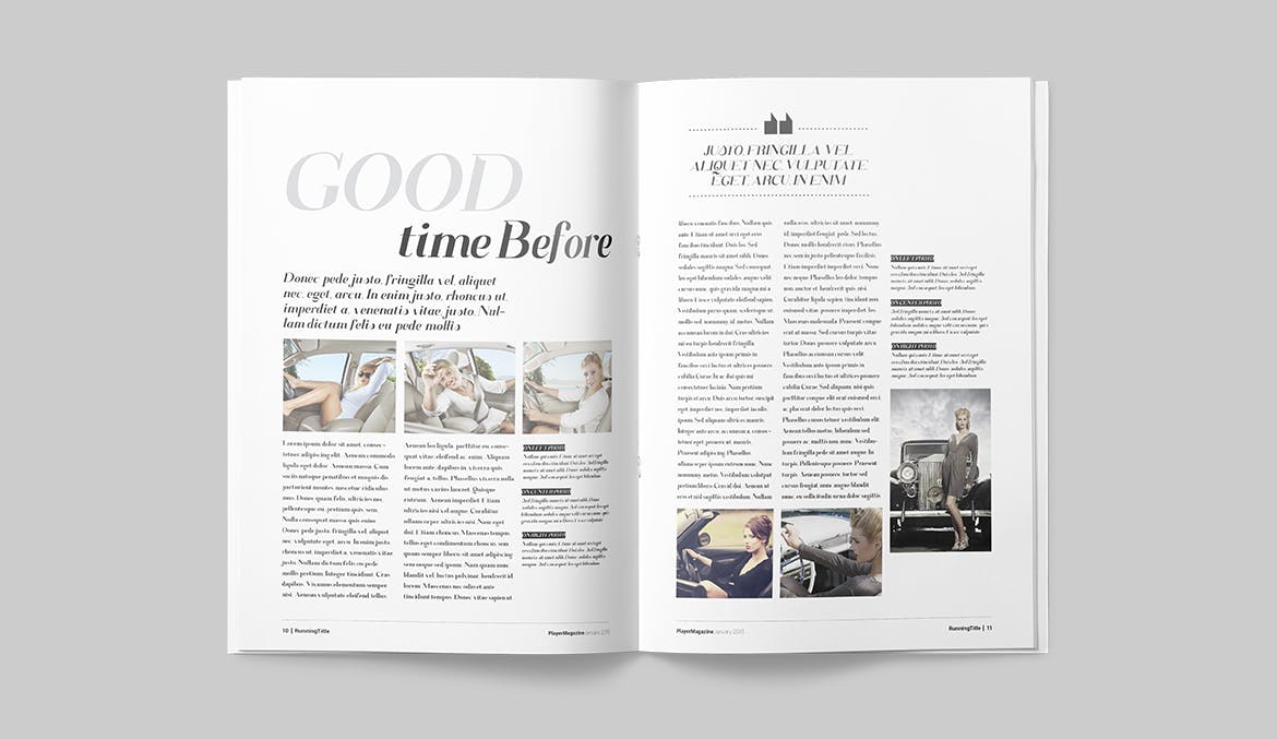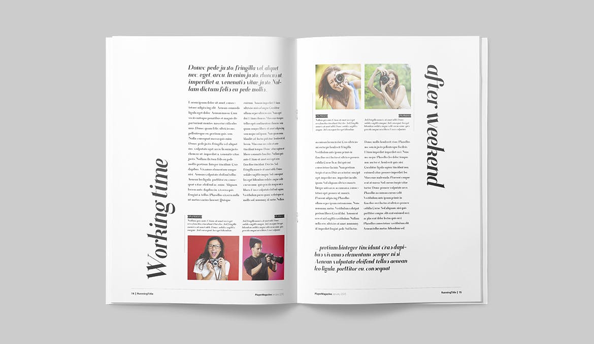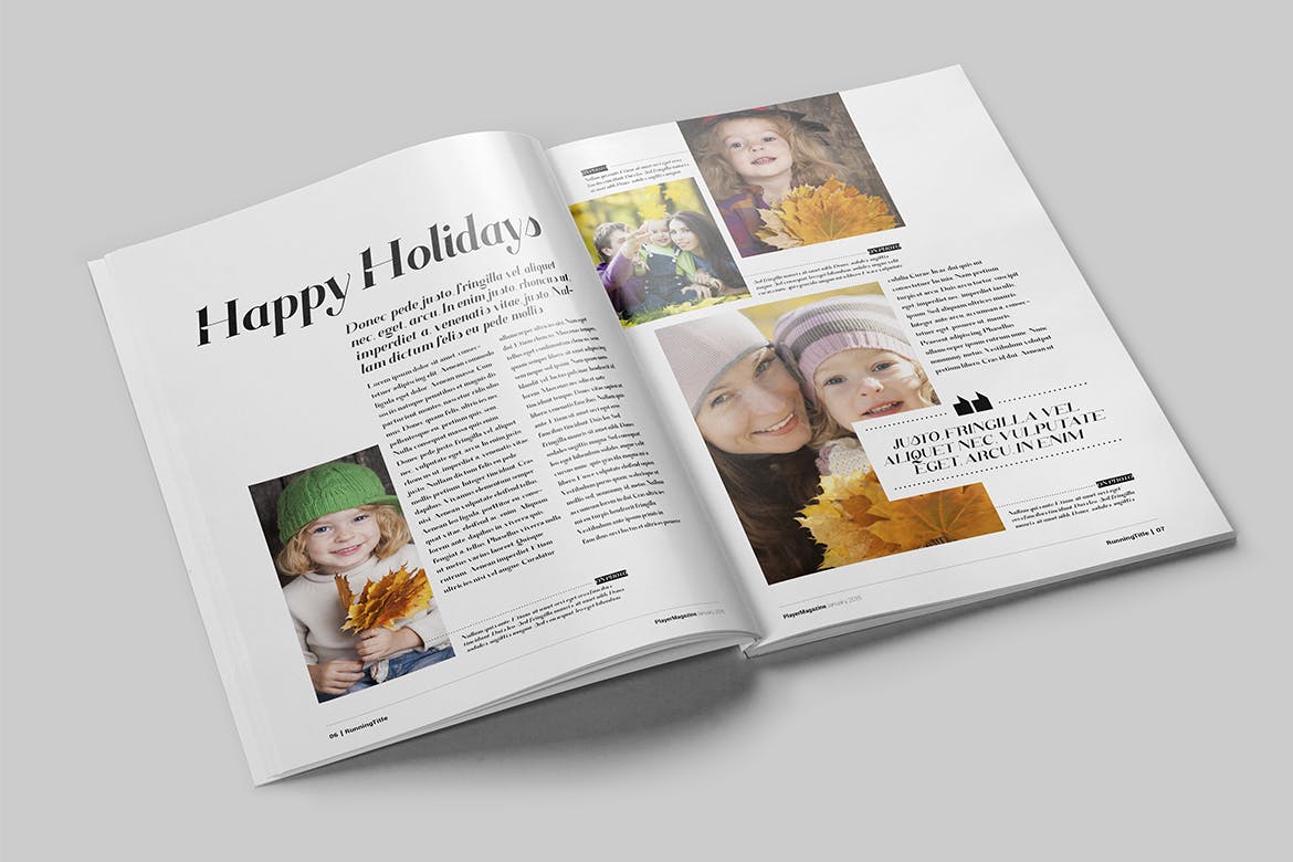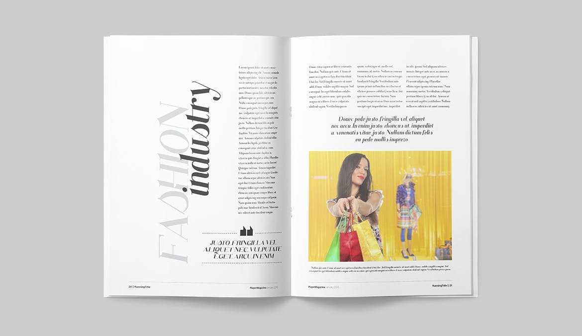 专业,干净的InDesign杂志模板。包括25页的文章,访谈,画廊和展示柜。所有文本均可编辑,并带有图像占位符。文件已准备好打印并带有出血。所有文本均设置有免费字体,并提供下载链接。