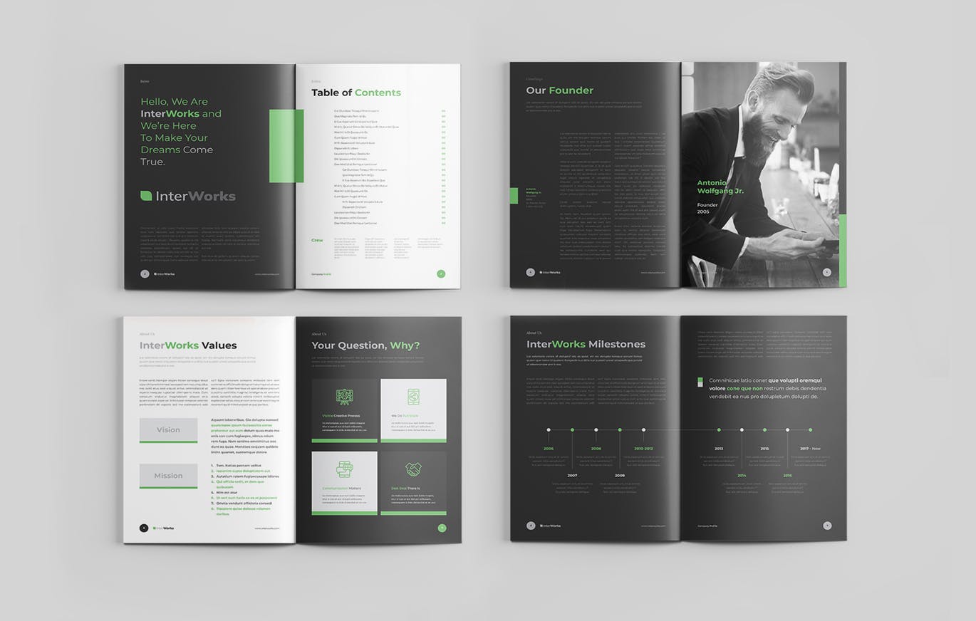 这次分享的是,20页A4绿色高端工作汇报项目提案画册宣传册品牌手册设计模板(indd),是带有20pp Indesign文档/模板的社论版面模板,并采用A4(297x 210mm)和美国信函(8.5×11”)进行设计。该模板是为那些希望以时尚典雅的方式与图表和文本一起显示图像的人设计的。