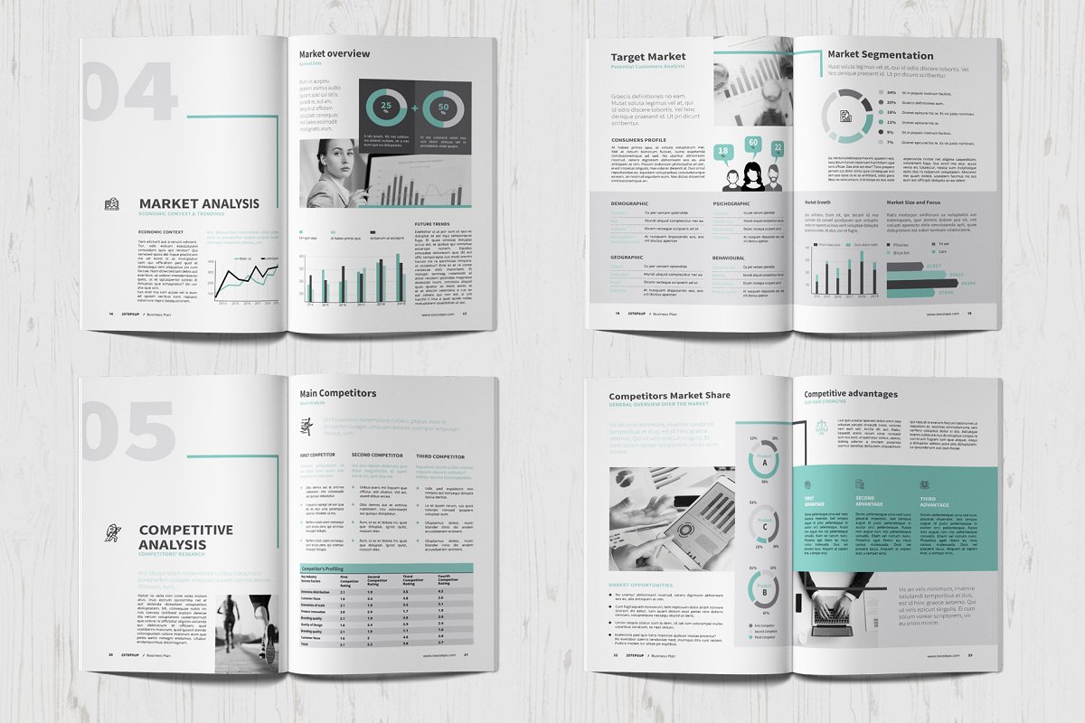 商业计划书/公司简介宣传册模板是您需要的工具,用于提供有关公司以及您的营销和财务策略的详细信息。业务计划模板包括有关您的目标、策略、市场营销和销售计划、管理和财务预测的信息。可以很好地组织在6列网格和图层组上,以便于自定义。