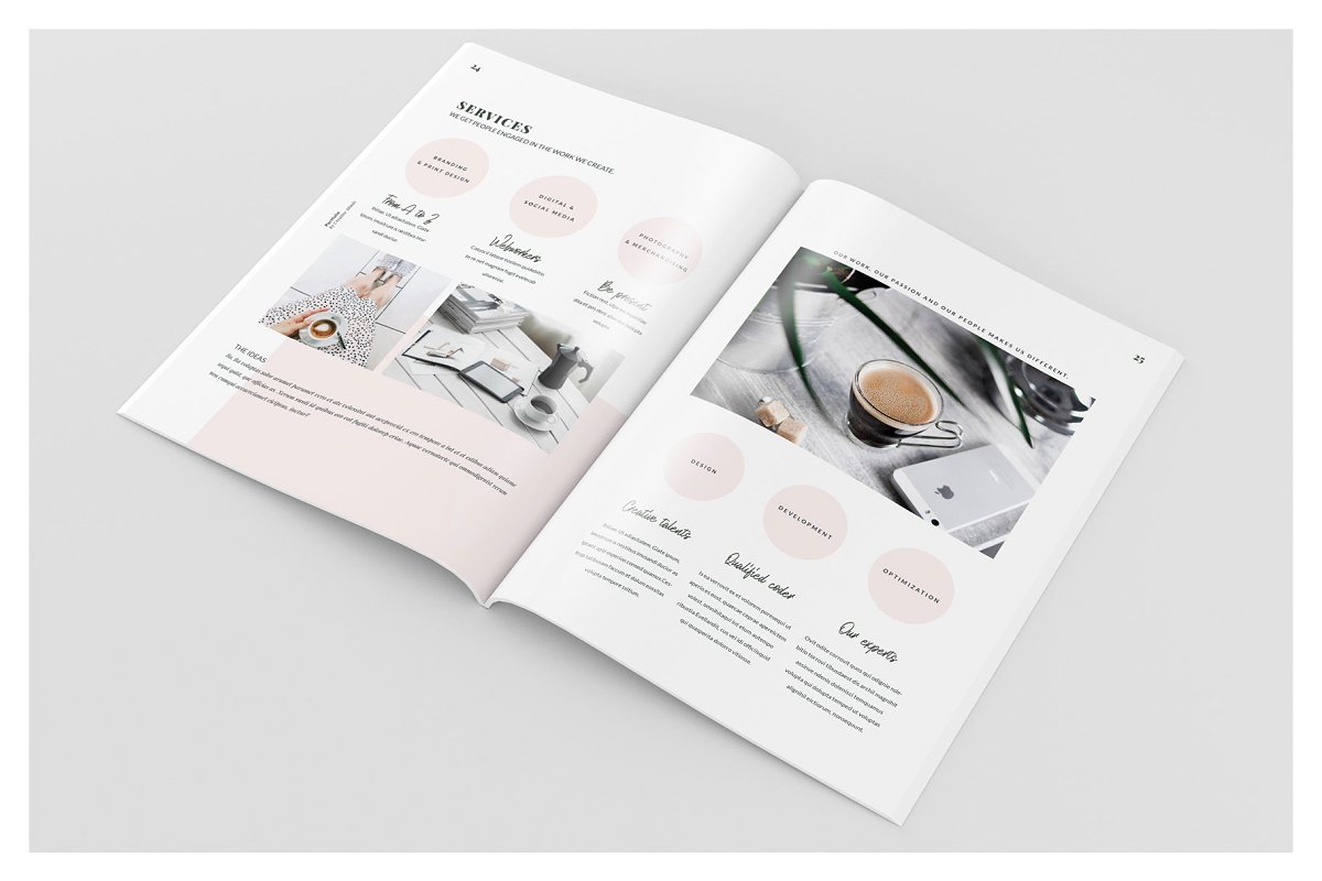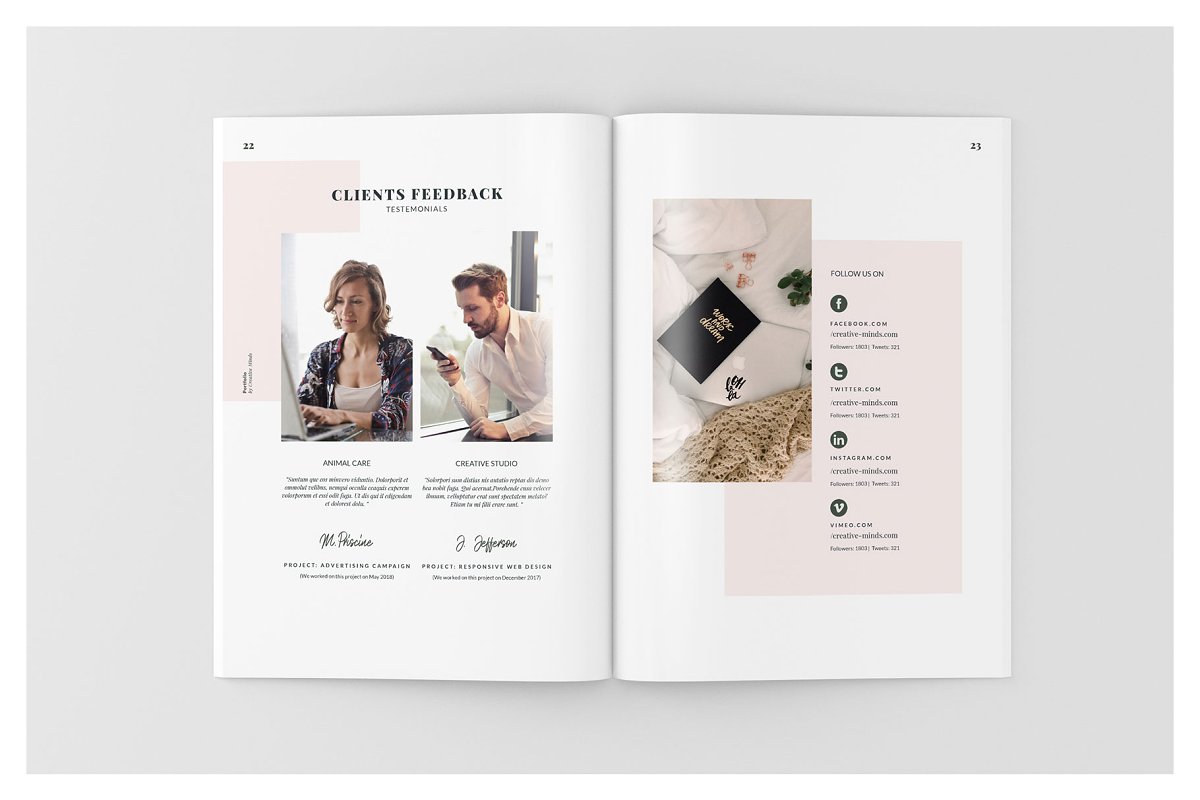此作品集模板是完全可自定义的Indesign文件。快速轻松地创建自己的作品集。该模板带有段落和字符样式、色样、母版页和图形元素等。是图形或网页设计师、摄影师或想展示其作品的人们的理想选择。