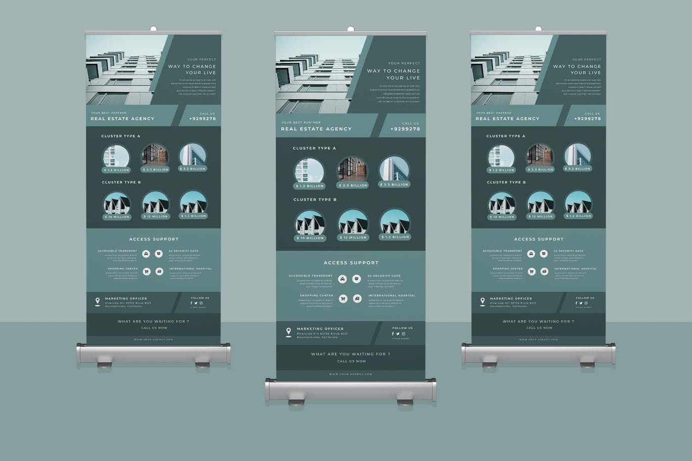 这次老不湿分享的是,高品质的时尚高端多用途房地产物业易拉宝X展架设计模板,公司易拉宝横幅模板。此布局适用于任何项目目的。非常容易使用和自定义X横幅模板,适用于任何类型的业务,如物业,酒店,房地产业务,代理商,网上商店,创意,博客,杂志,零售,摄影师,艺术家,设计师,自由职业者等等。