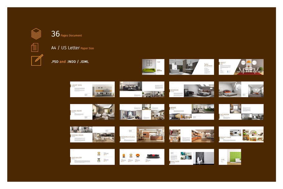 专业、干净、现代的36页宣传册/目录/作品集模板。只需放入您自己的图片和文字,即可进行打印。或将其用作专业的在线PDF或电子邮件附件此产品组合可以用于多种用途。用它来展示您的照片、产品、服务或其他您能想到的东西。您看到的所有内容都可以在Photoshop&Indesign中进行编辑。所有颜色都可以在一个位置轻松更改。