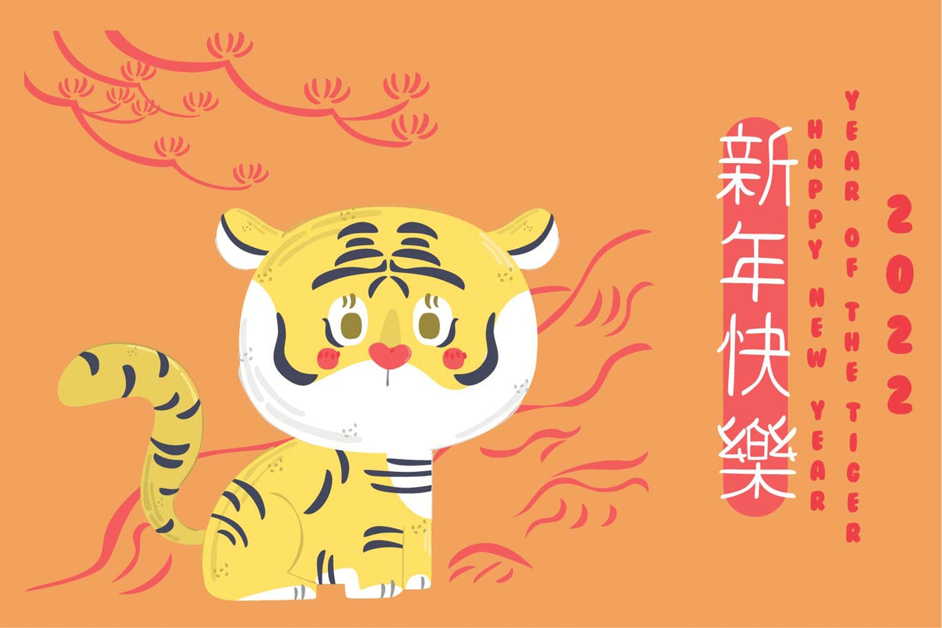 这次老不湿分享的是,时尚高端清新简约呆萌的可爱2022虎年新年春节插画-AI, EPS, JPG,哈哈哈哈。