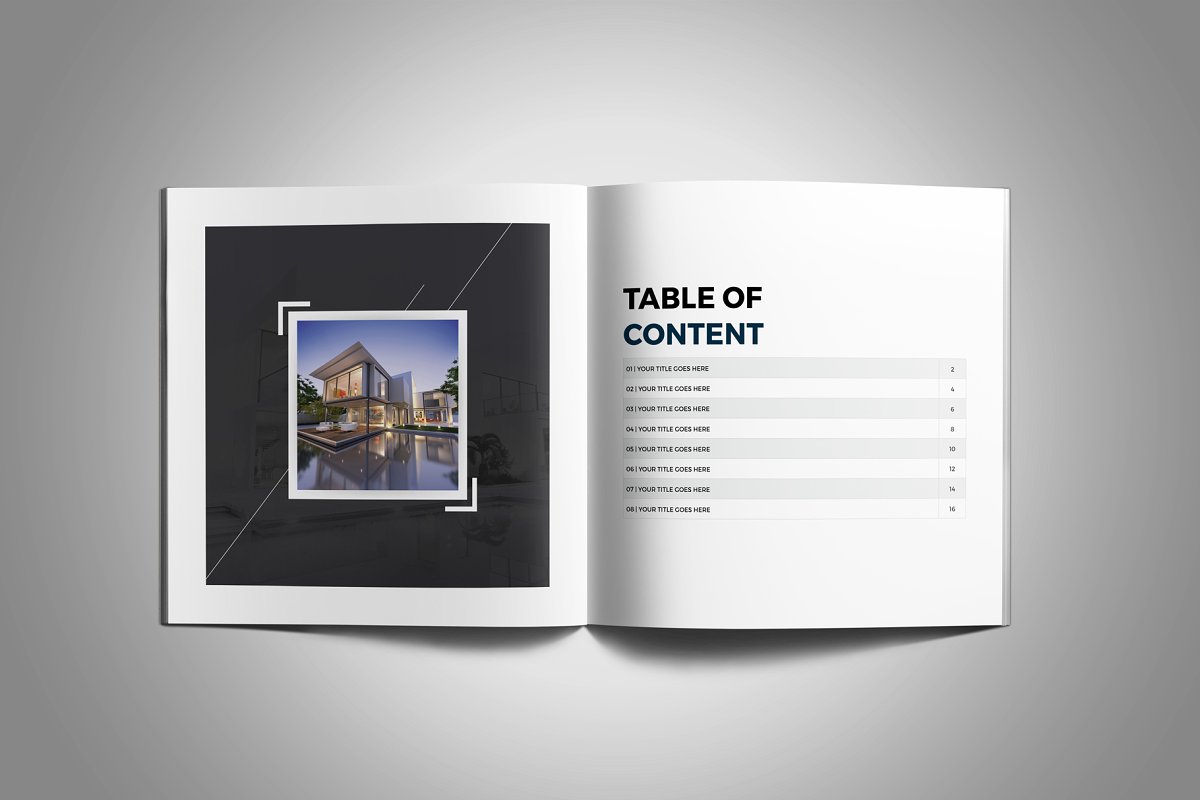 这是一个干净且易于使用的模板。易于编辑,您可以一次更改整个文档中的黑色强调色,包括段落和字符样式、文本和图像放置在单独的图层上,文本与网格对齐。尺寸为方形(20×20)cm,出血3mm,包含16个页面。