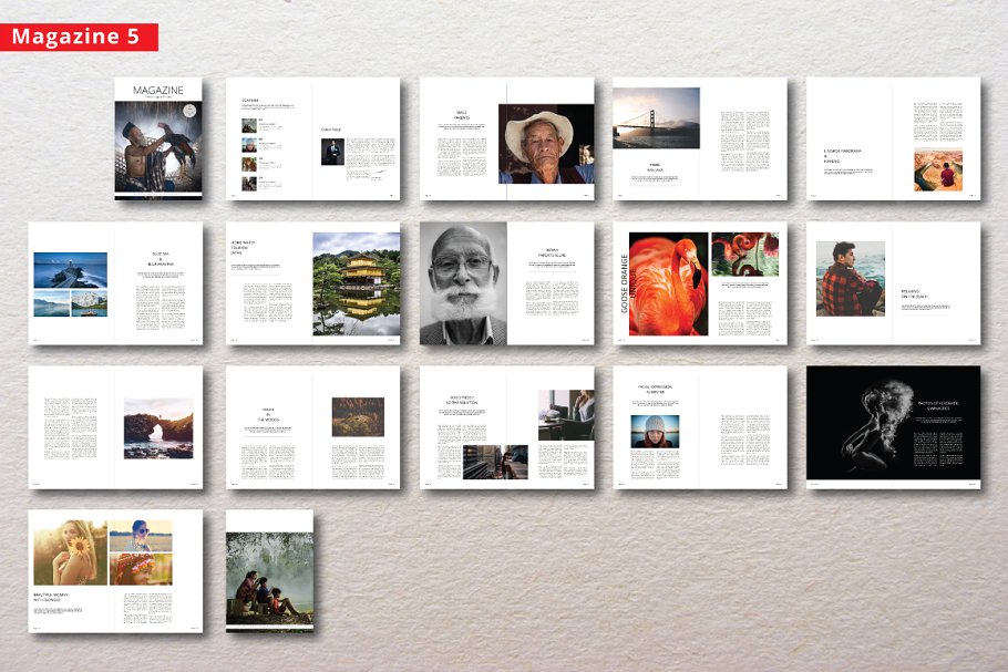 这是专业的A5杂志套装模板,共158页,干净时尚的InDesign杂志模板,非常时尚、新潮、干净、时尚、优雅、专业,并且具有多种用途。您可以将此模板用于任何类型的行业,例如时装、摄影、艺术、社会、人文、企业等。模板中使用的任何元素(例如文本、颜色、图形元素、图像、布局)都易于自定义。