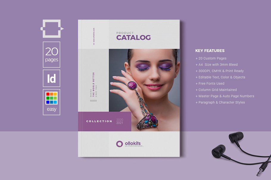 该产品目录模板可用于任何企业或组织来展示其产品。该模板非常易于自定义,您可以在很短的时间内更改所有内容,例如文本、图像、颜色等。它经过专业组织,因此任何人,即使是初学者,也都可以像专业人士一样编辑目录模板。提供A4尺寸和20个页面,其中包含不同的布局以及母版页和自动页码。您可以轻松添加或删除页面。
