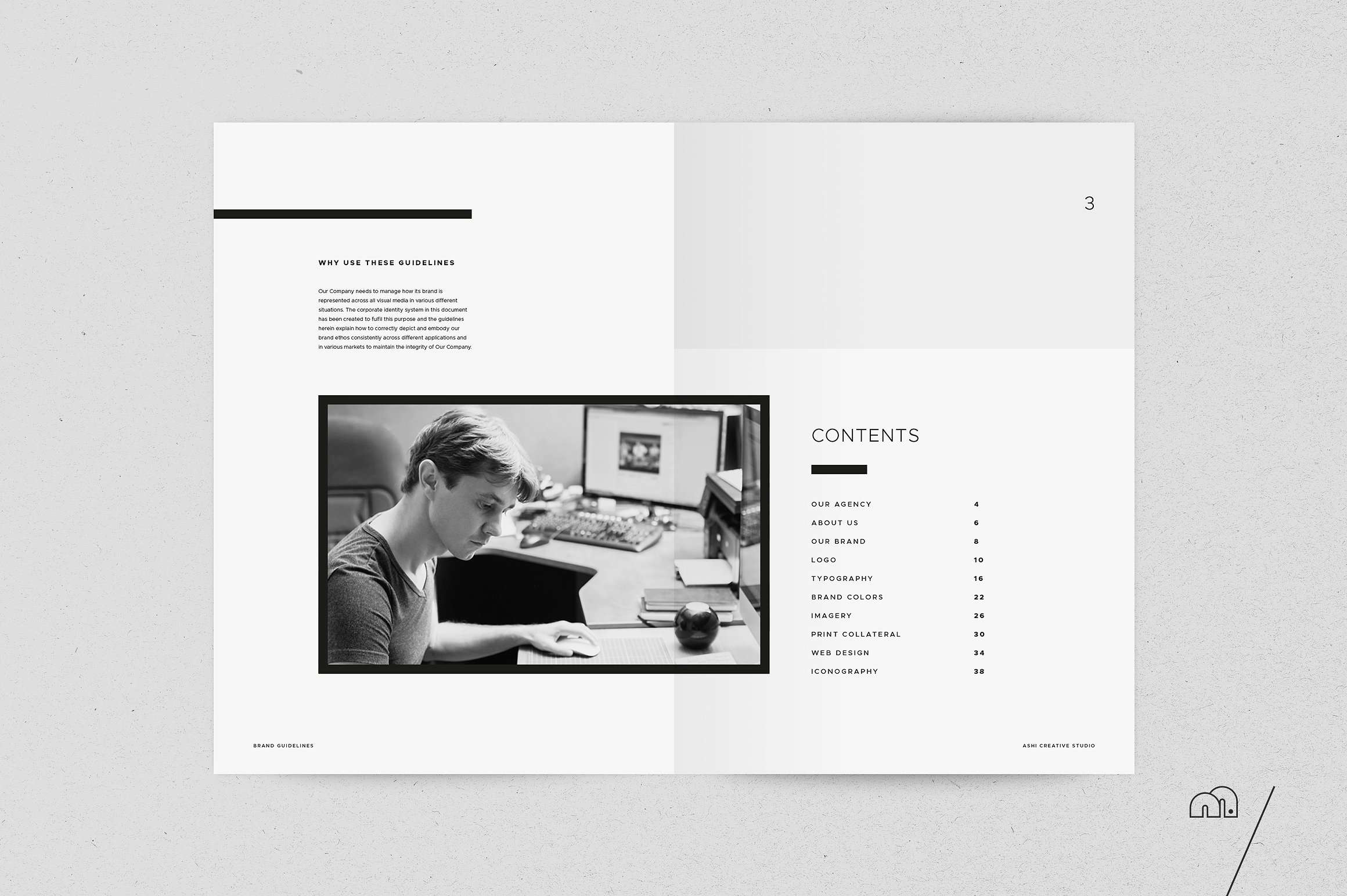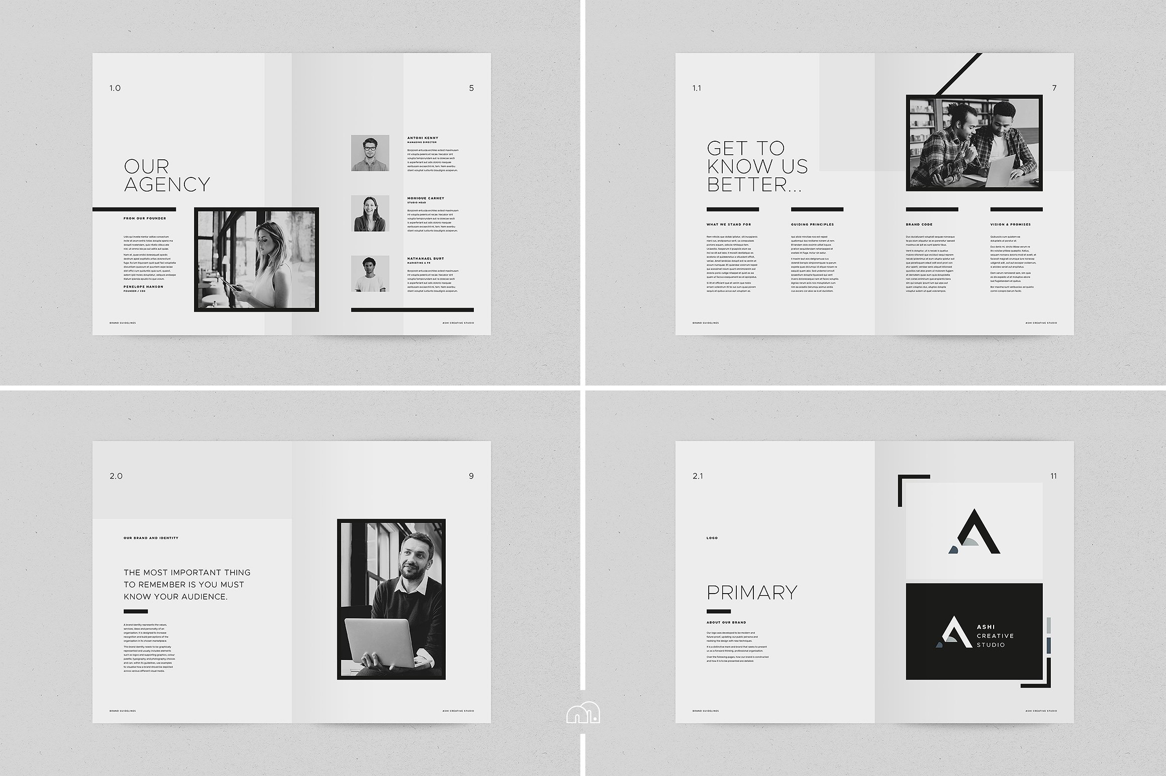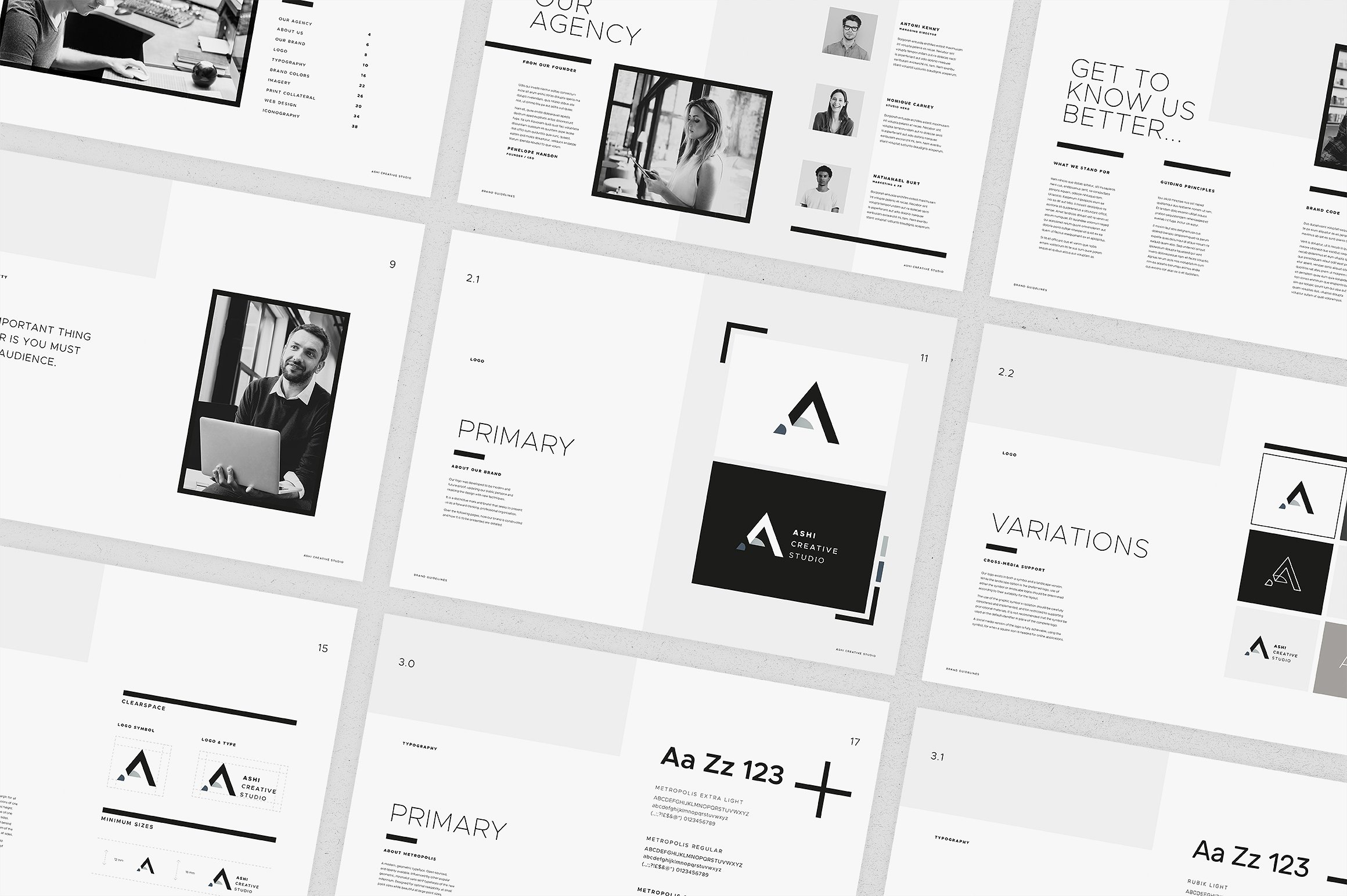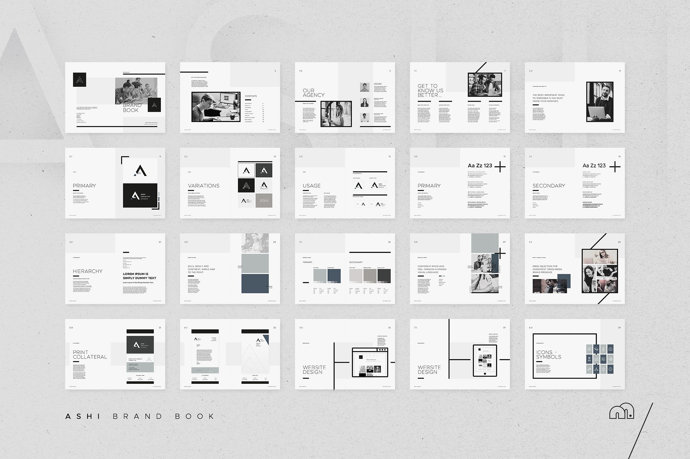 这个模板是一个极简主义的设计,注重灵活性。简单地替换标志和品牌的颜色。此模板可用于来自多个行业的各种客户端,一切都是完全可定制的。 这样做的目的是让你在完成一个品牌推广练习后,把它作为你的首选文档。包括你将需要的所有部分;公司简介、目标、愿景、原则、主要标志、标志变化和使用、排版、调色板、图像、文具、网页设计和图标。