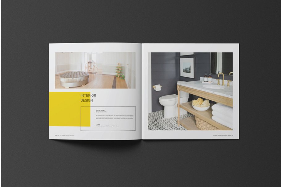 这是28页的方形组合/小册子/目录模板,非常适合从事产品/图形设计组合、室内设计目录、产品目录和基于代理的项目的设计师使用。应用于:平面设计师目录、图册、写真集、相片集等。只需放入您自己的图像和文本,即可进行打印。
