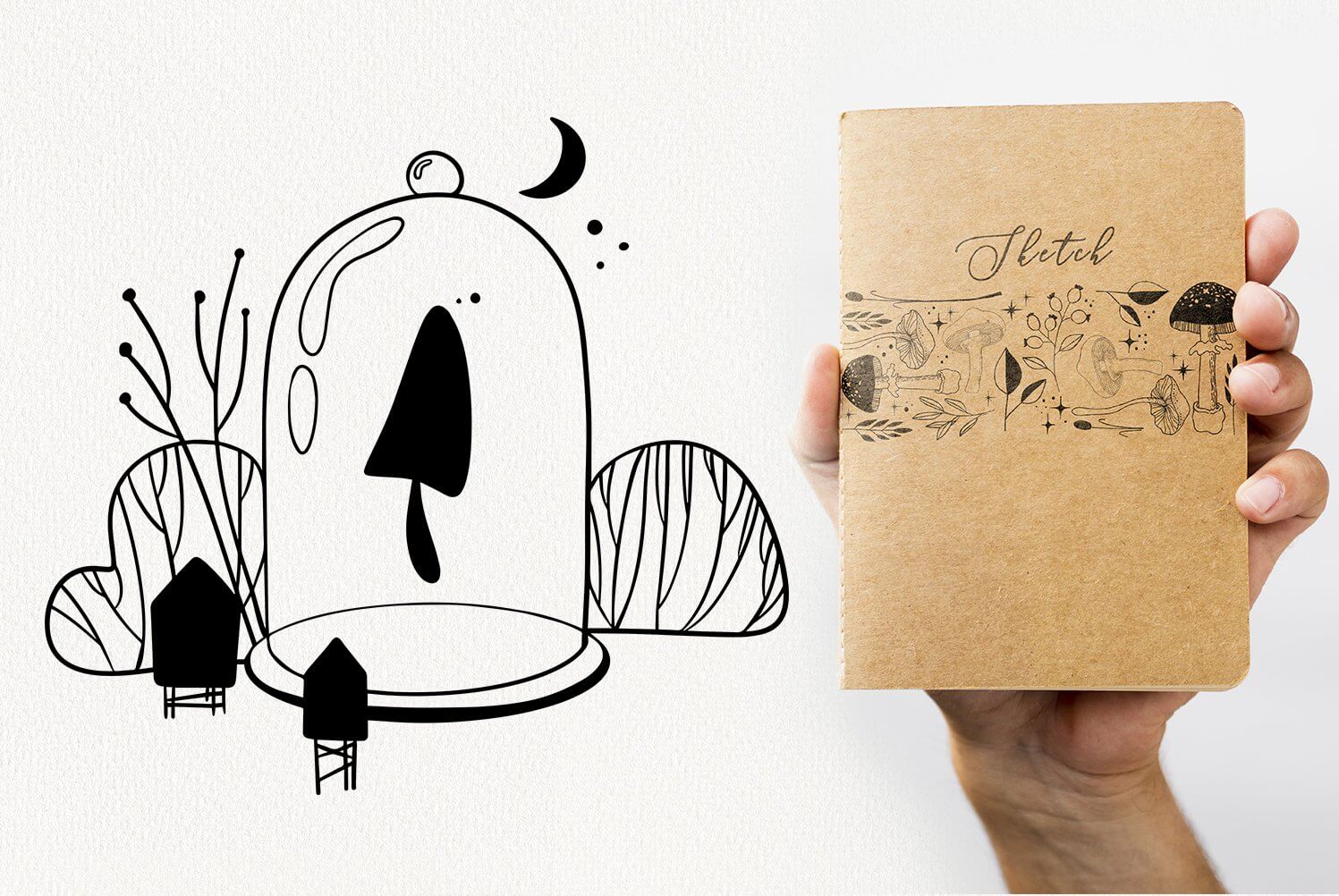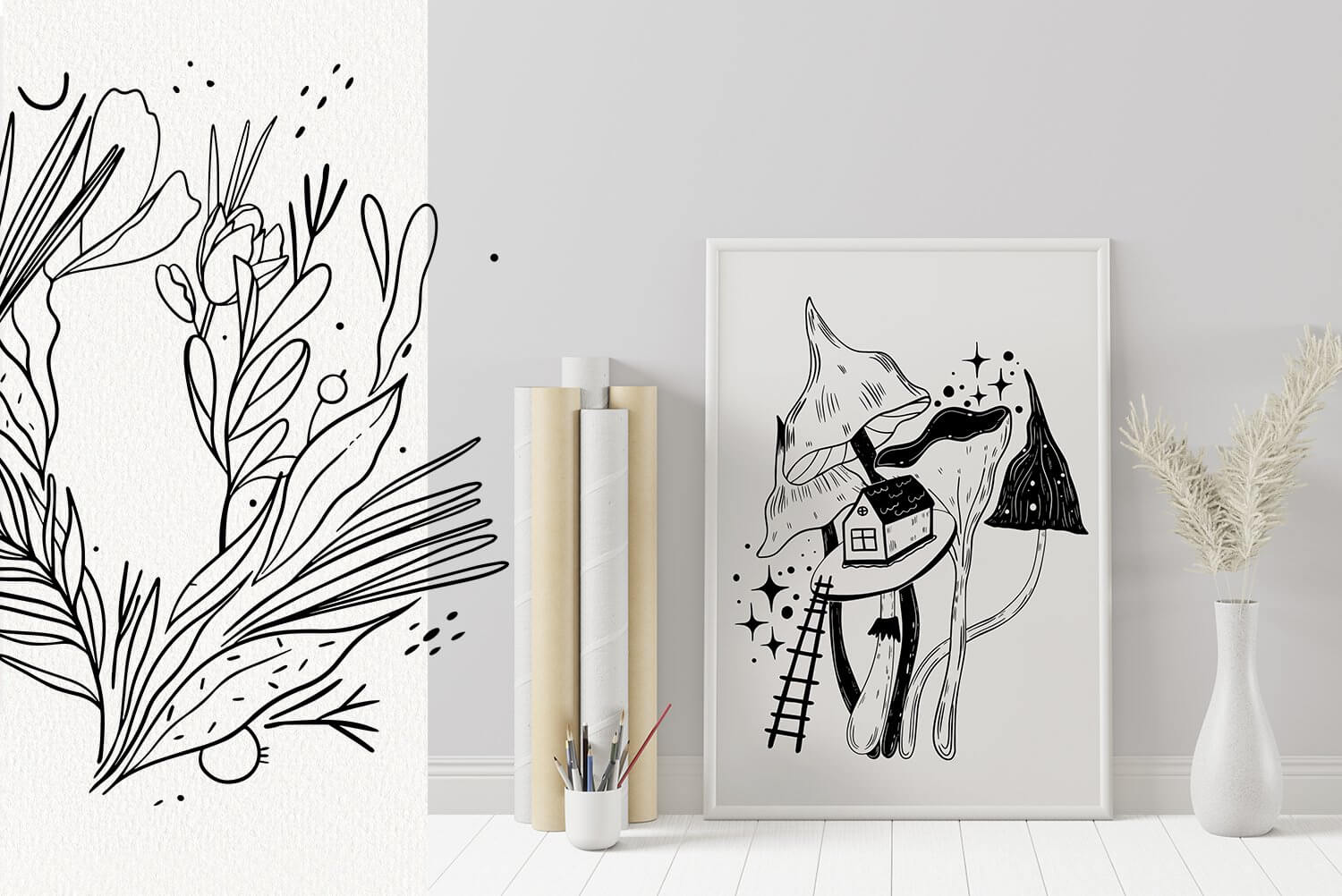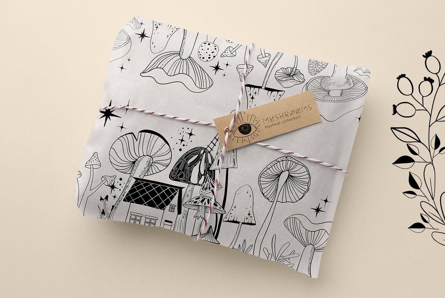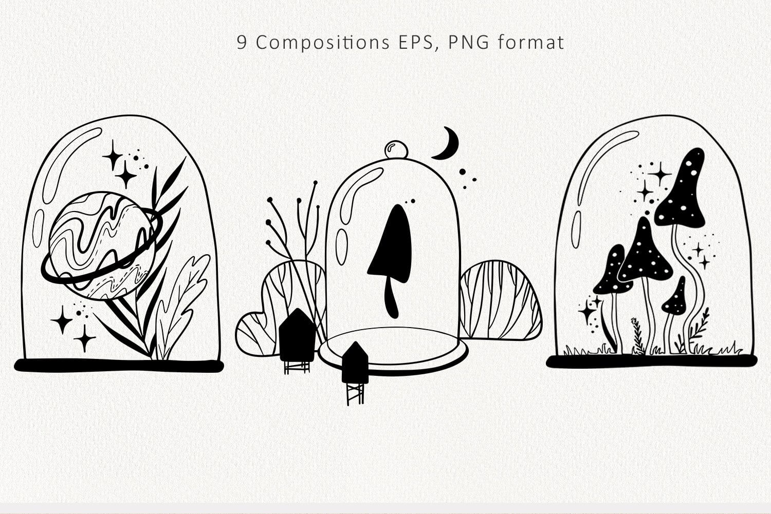 神秘和神秘物品、无缝图案、预制标志和插图的集合。以一条线的样式制作的简约对象。为您的产品、移动应用程序插图、社交媒体卡片、工艺商业产品、美容产品、服装和纺织品印刷等创建独特的简约风格。