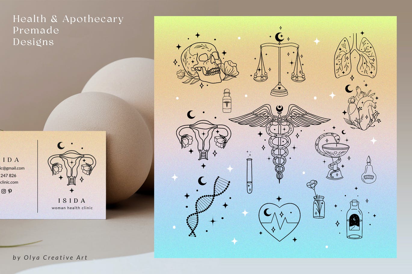 这次老不湿分享的是,神秘抽象符号背景底纹纹理集合-AI, EPS, PNG, SVG,这个美丽的收藏包括各种抽象的神秘医学符号 – 蛇杯 – 卫生碗、杖、抽象天象、装饰设计、子宫标志、月亮和星星、精神、鳞片、DNA、长生不老药、药瓶和试管、肺、头骨.