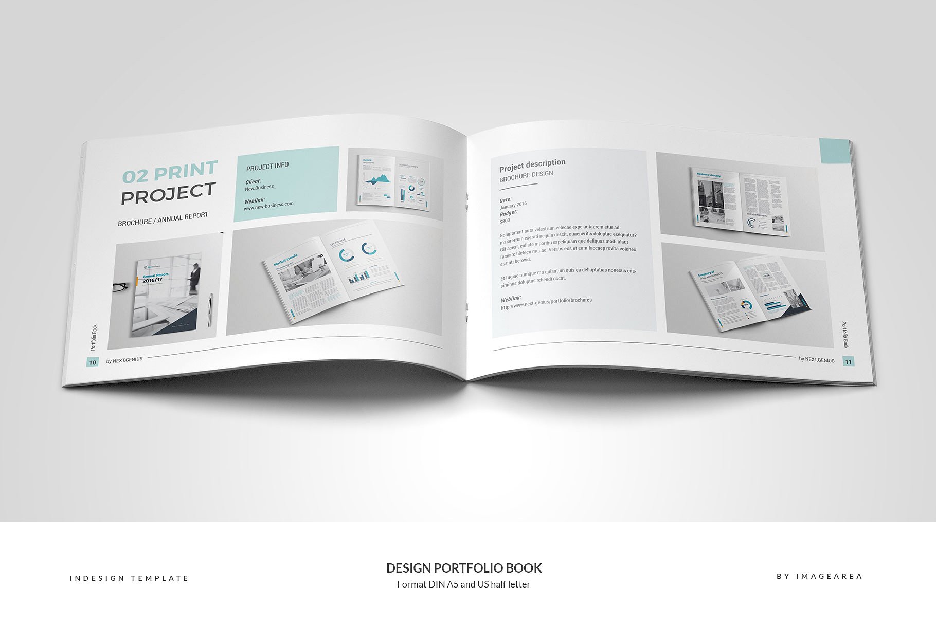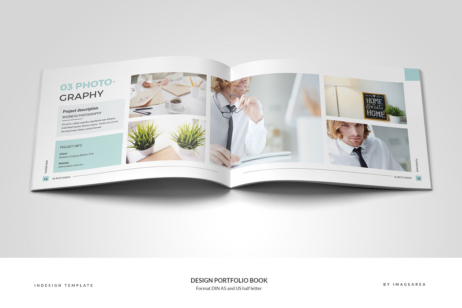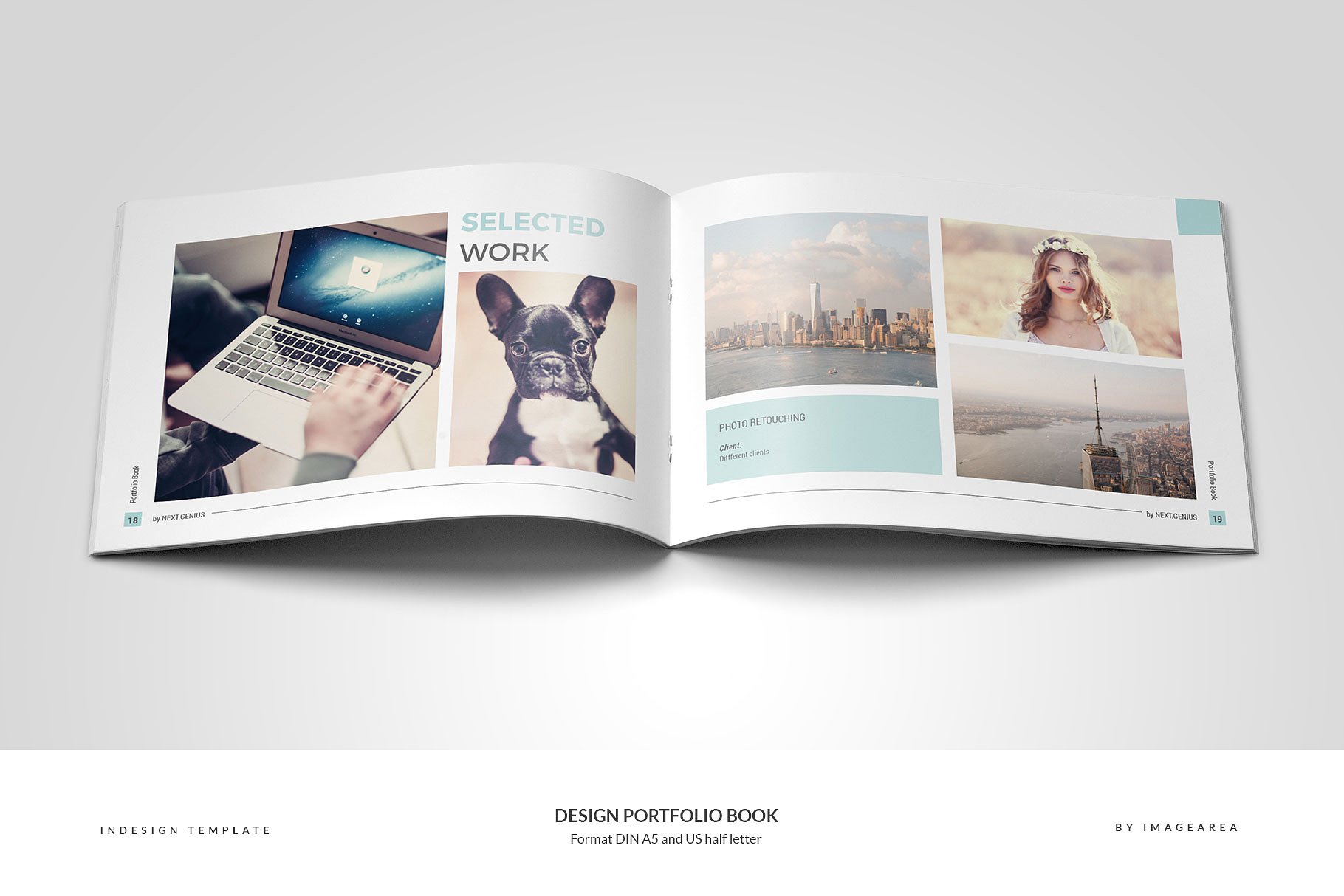 这个模板为一个24页的作品集,为设计师或机构准备。不包括图像仅用于预览。格式为DIN A5 (210×148 mm) 带有 3 mm出血线和半字母 (8.5 x 5.5英寸)带有 0.125英寸出血线。