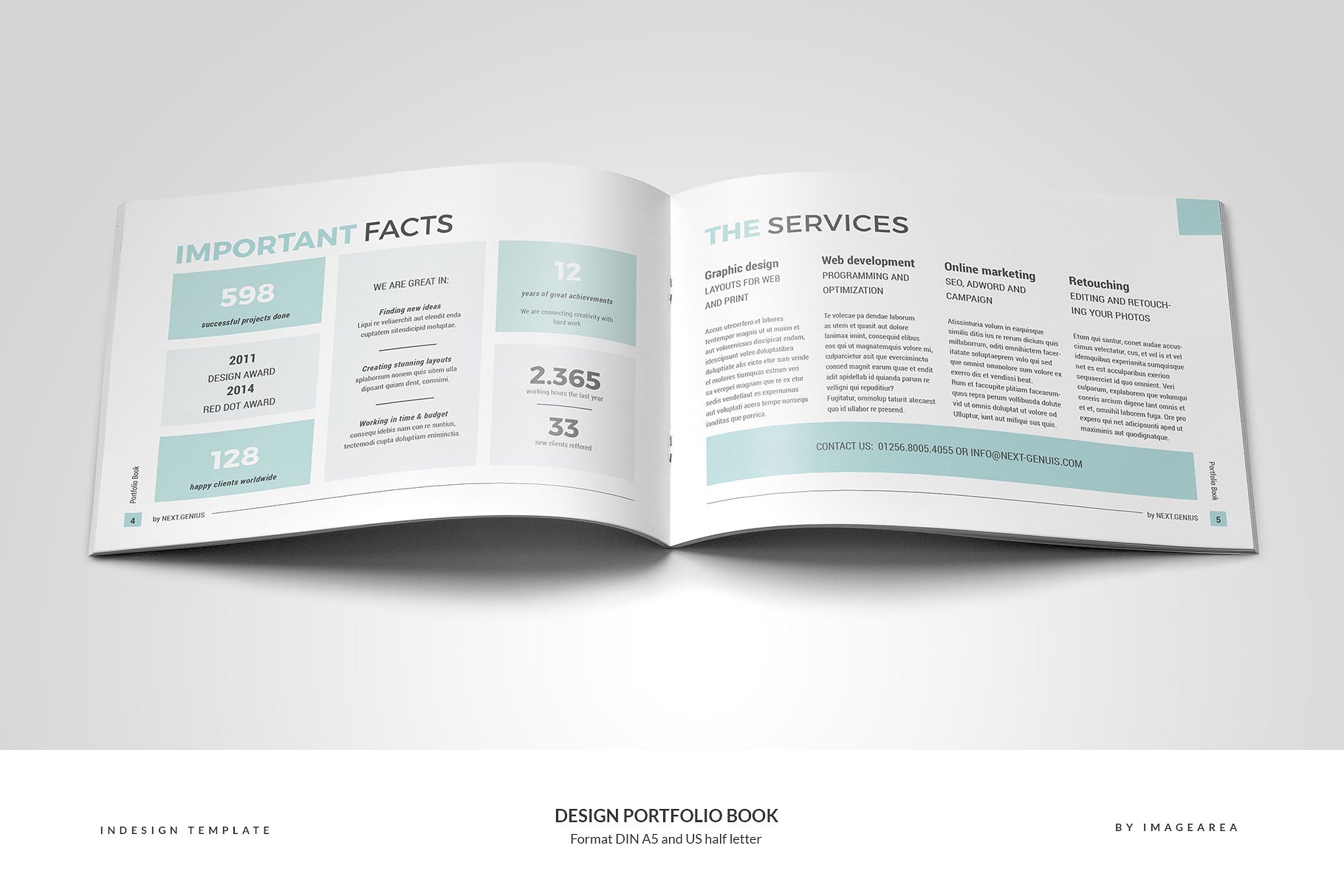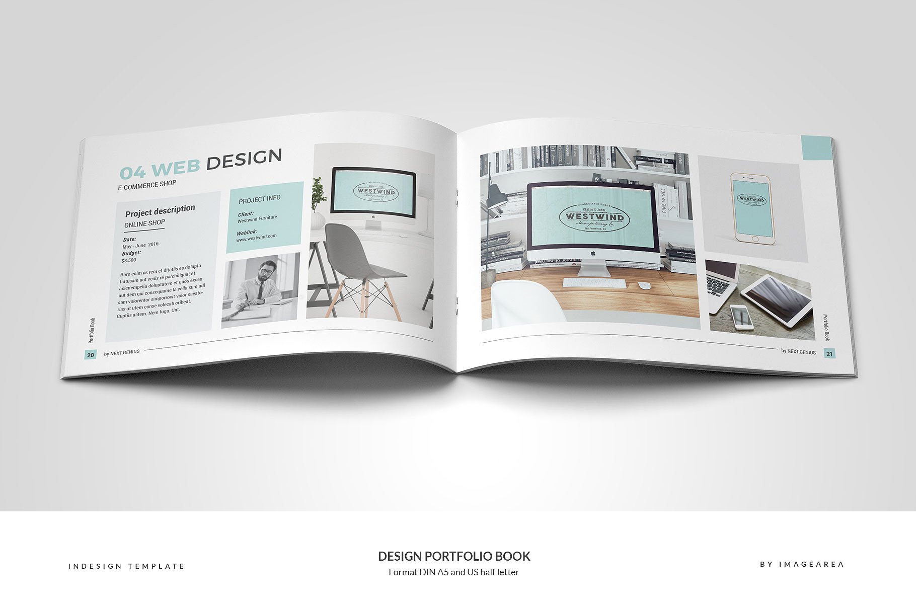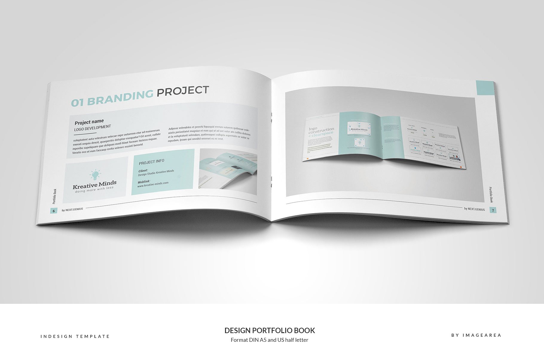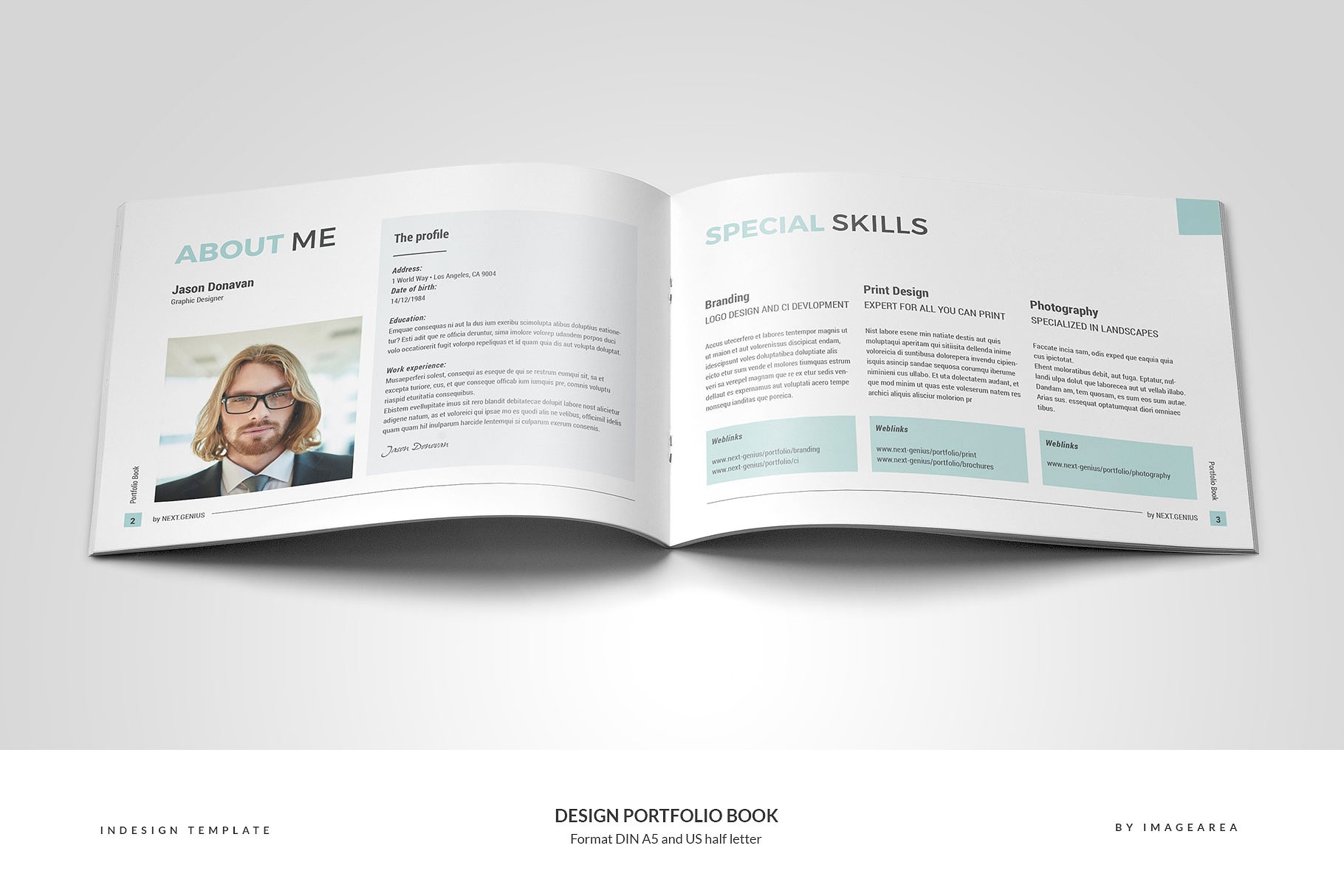 这个模板为一个24页的作品集,为设计师或机构准备。不包括图像仅用于预览。格式为DIN A5 (210×148 mm) 带有 3 mm出血线和半字母 (8.5 x 5.5英寸)带有 0.125英寸出血线。