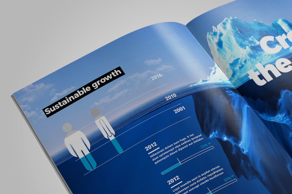 这是一款适合各种用途的杂志图册模板,它具有您在专业宣传册模板中所期望的所有功能,从占位符到文本样式,可自定义的信息图表以及易于编辑的母版页。提供两种不同尺寸的A4和美国信纸。