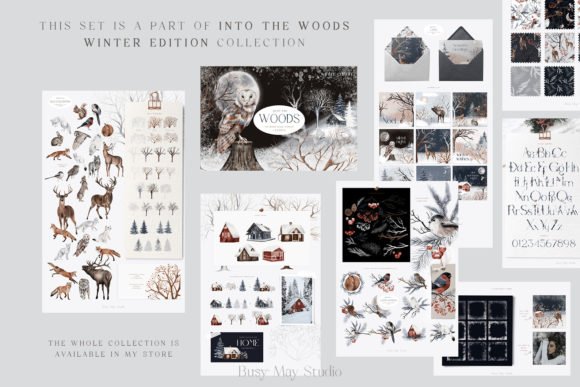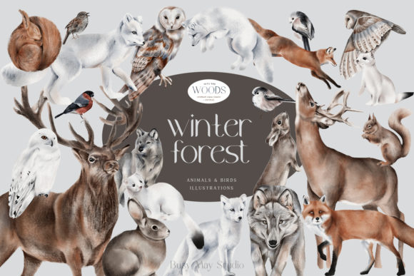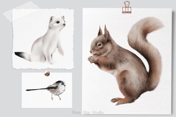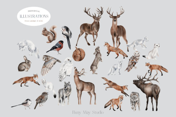 冬季森林动物和鸟类剪贴画素材,动物和鸟类是手绘和彩绘的,文件非常大且分辨率很高,因此它们非常适合您的网络和印刷项目。非常适合制作卡片、书籍插图、标签、贴纸、教育材料、海报等等!