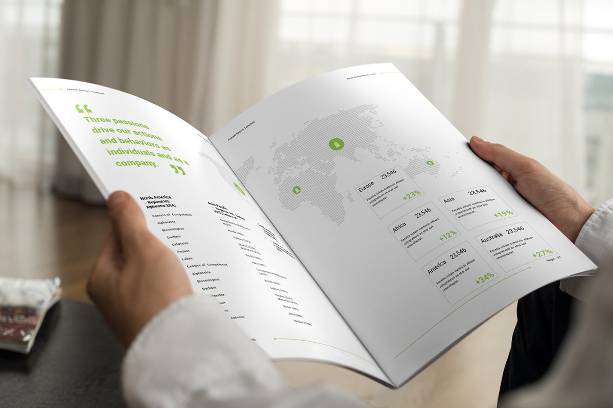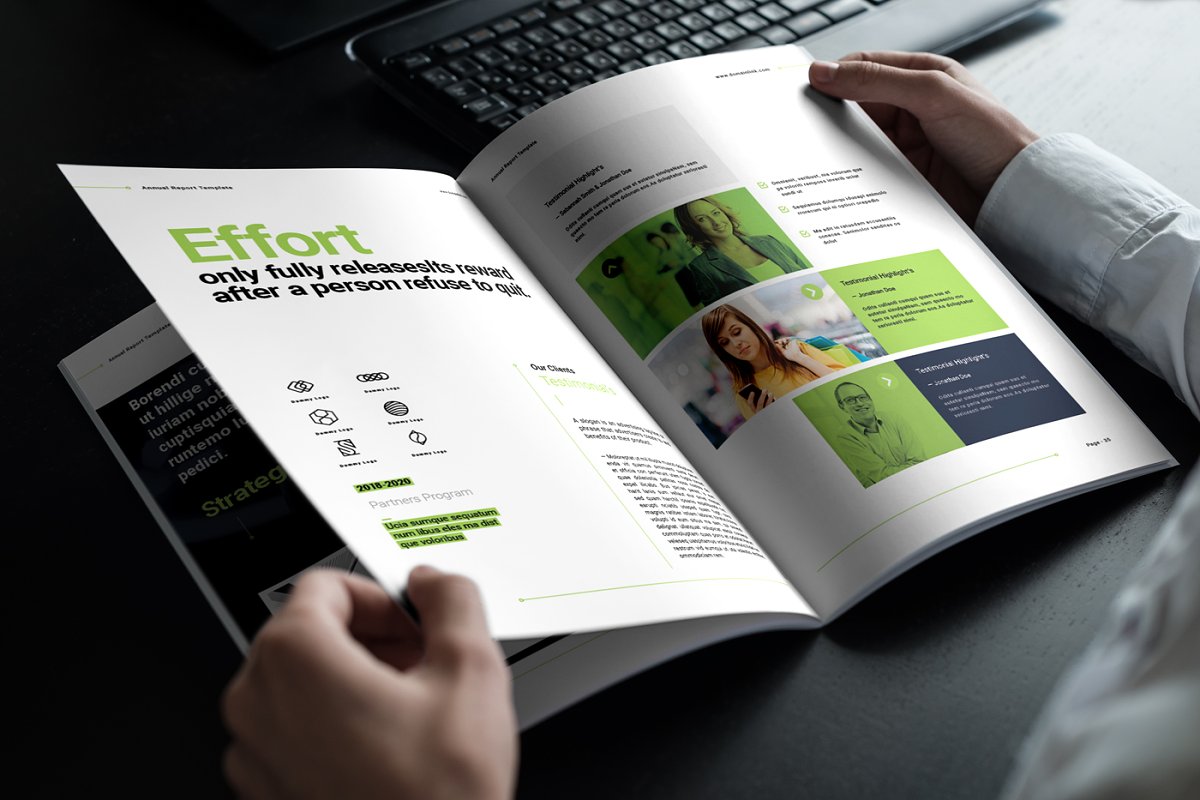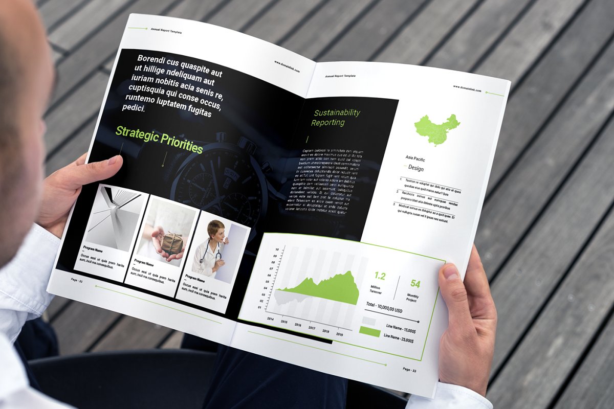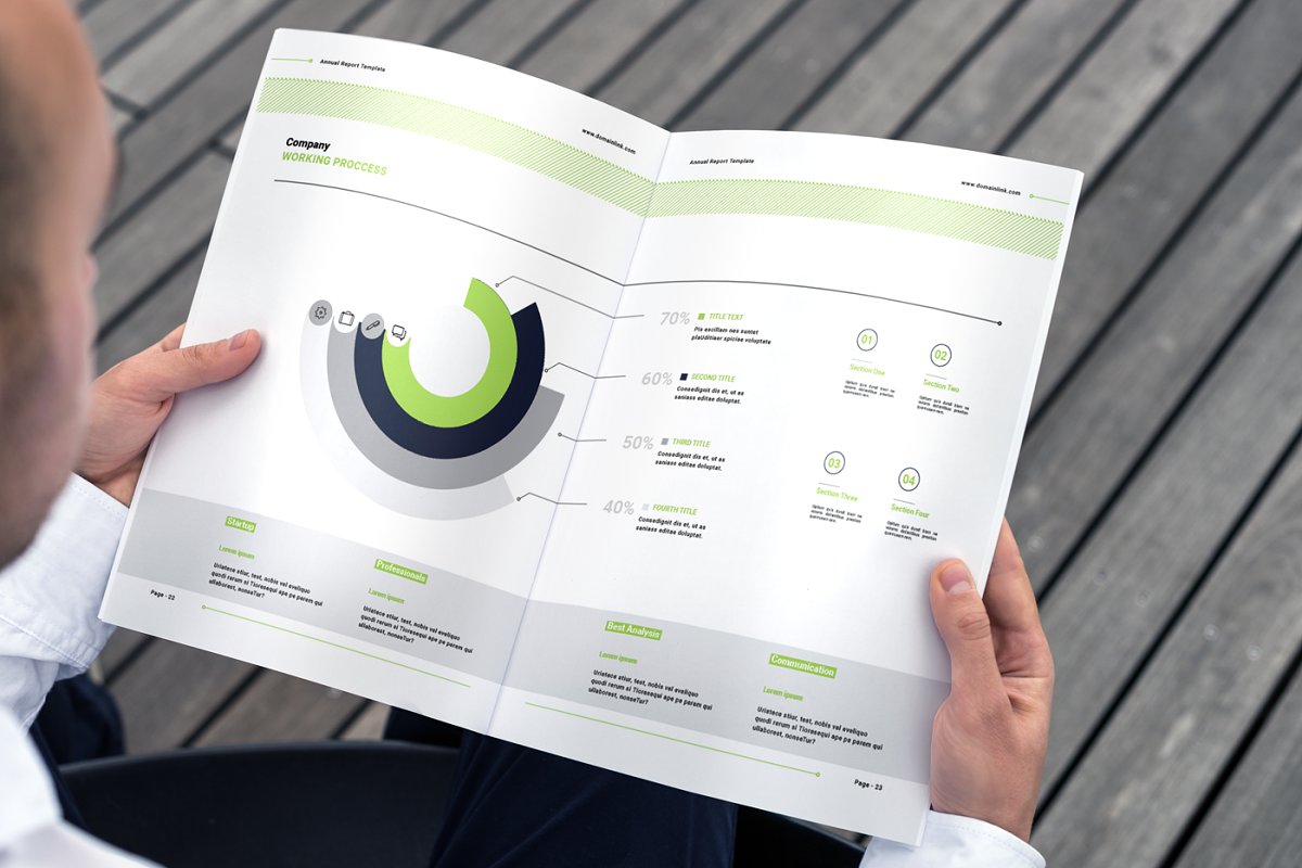 此模板包含40个页面,粗体角度形状,以及照片的裁剪占位符。它具有您在专业宣传册模板中所期望的所有功能,从占位符到文本样式,可自定义的信息图表以及易于编辑的母版页。提供两种不同尺寸的A4和美国信纸。