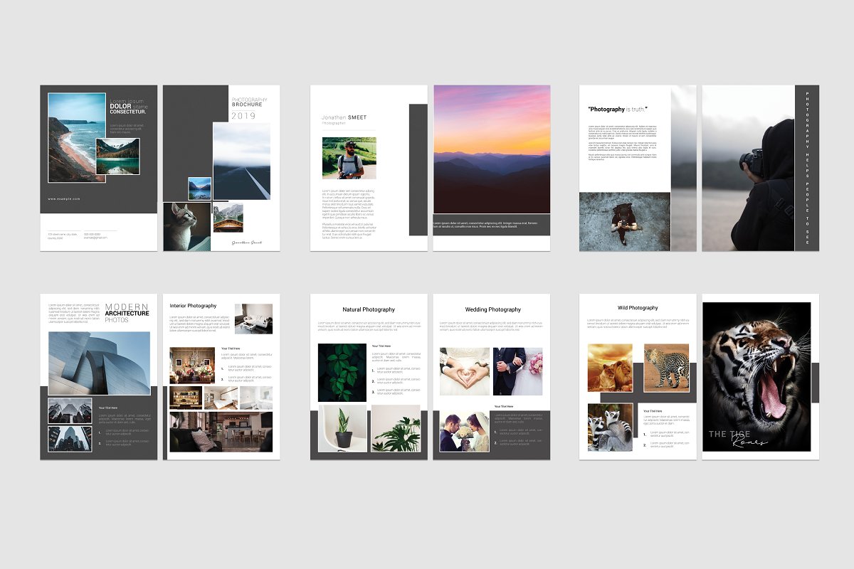 时尚摄影组合小册子模板,易于编辑和替换照片和文本。适合任何摄影师的完美设计。