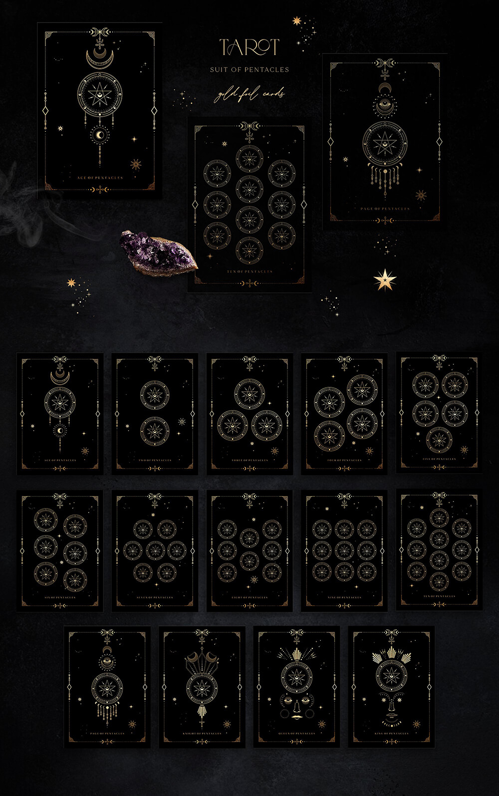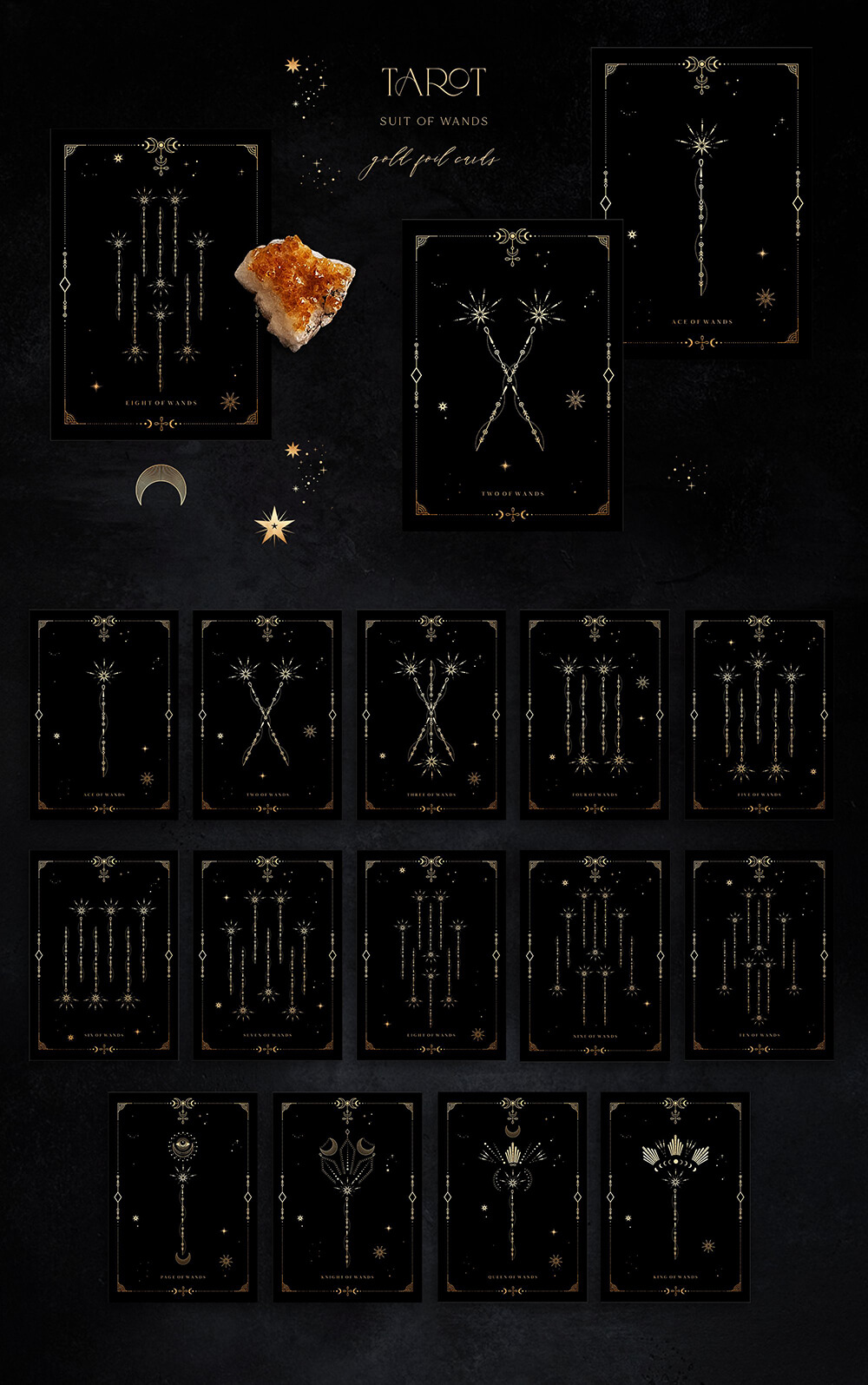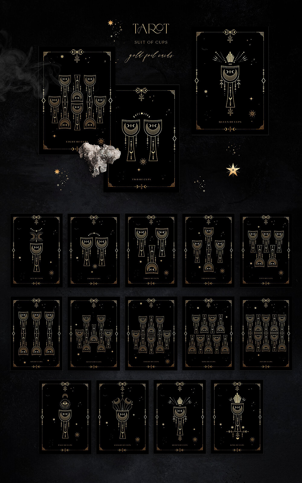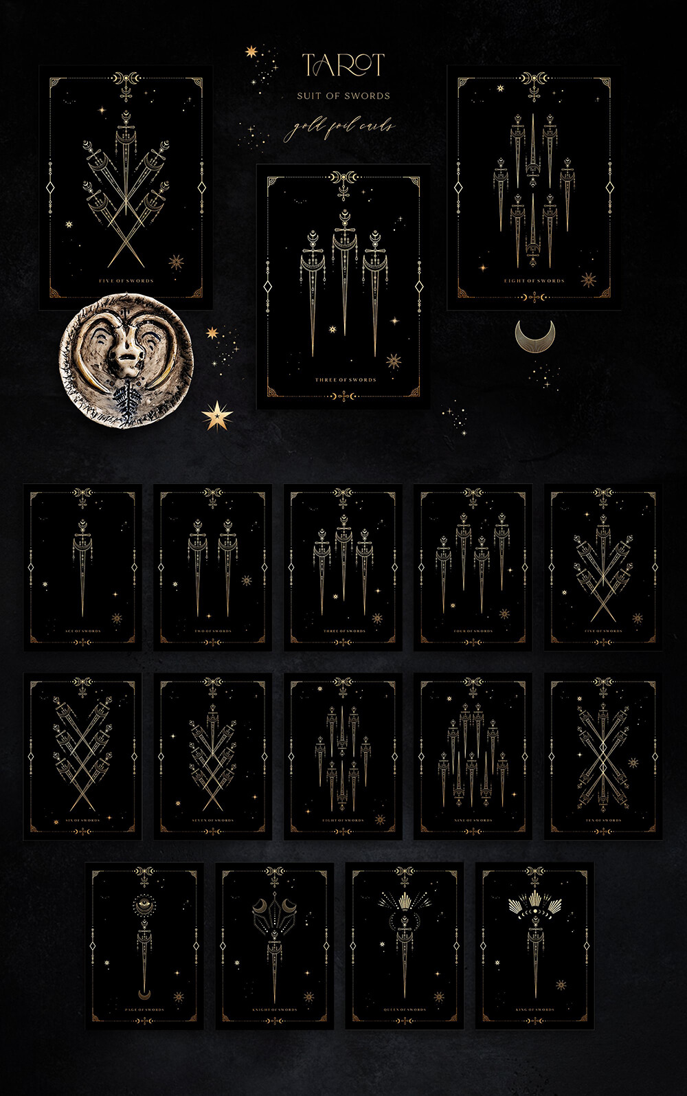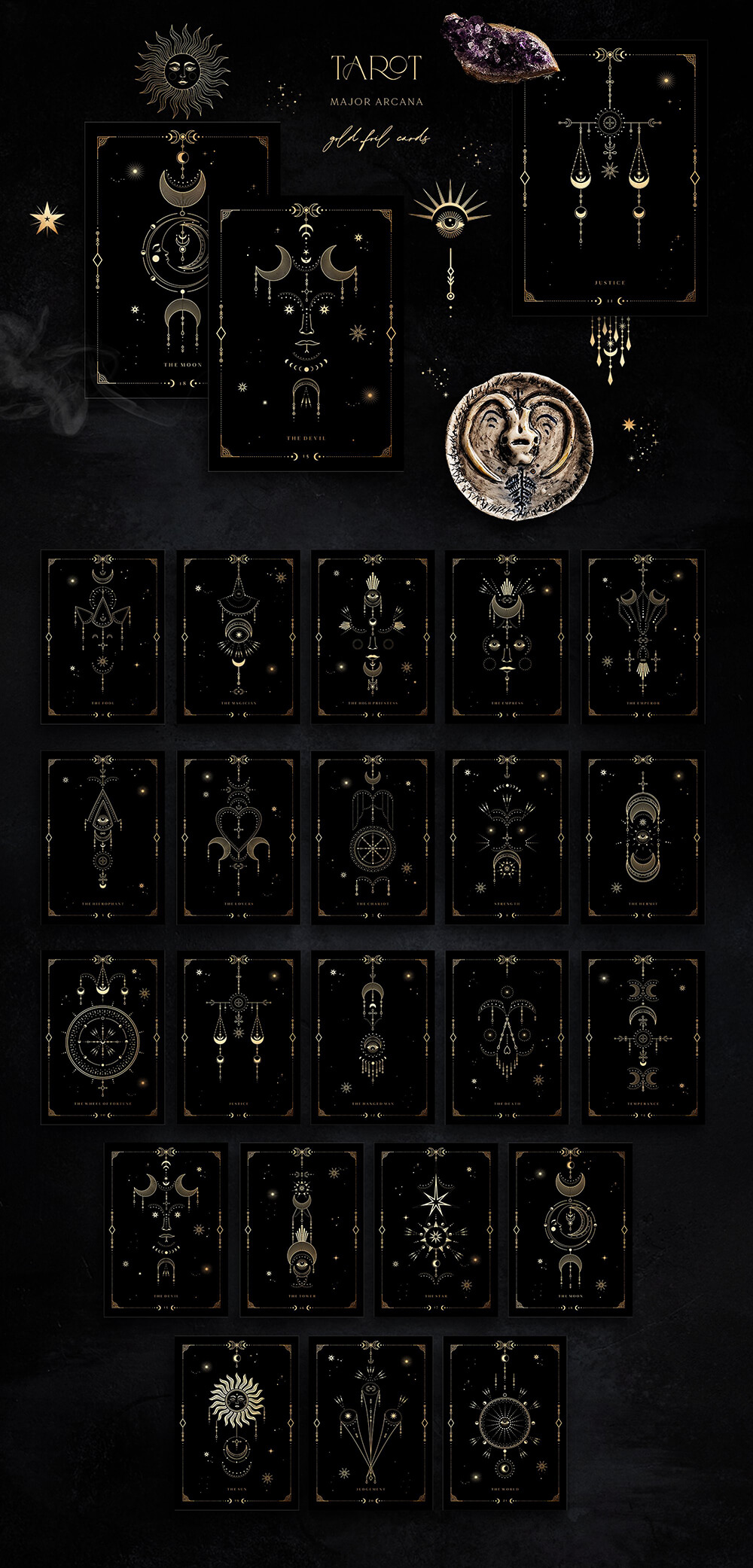 这是一个迷人的系列,其灵感来自温暖的月光、闪烁的星星的金色和太空的黑色肉体,隐藏着最神秘的秘密。包含 700+线条艺术图形元素,可让您唤醒自己的魔力并简化项目的工作过程。高质量的插画使您可以根据自己的想象力尽可能广泛地应用它们。这些神奇的宝物将装饰任何项目,无论您构想什么,并且在任何时候都具有相关性!