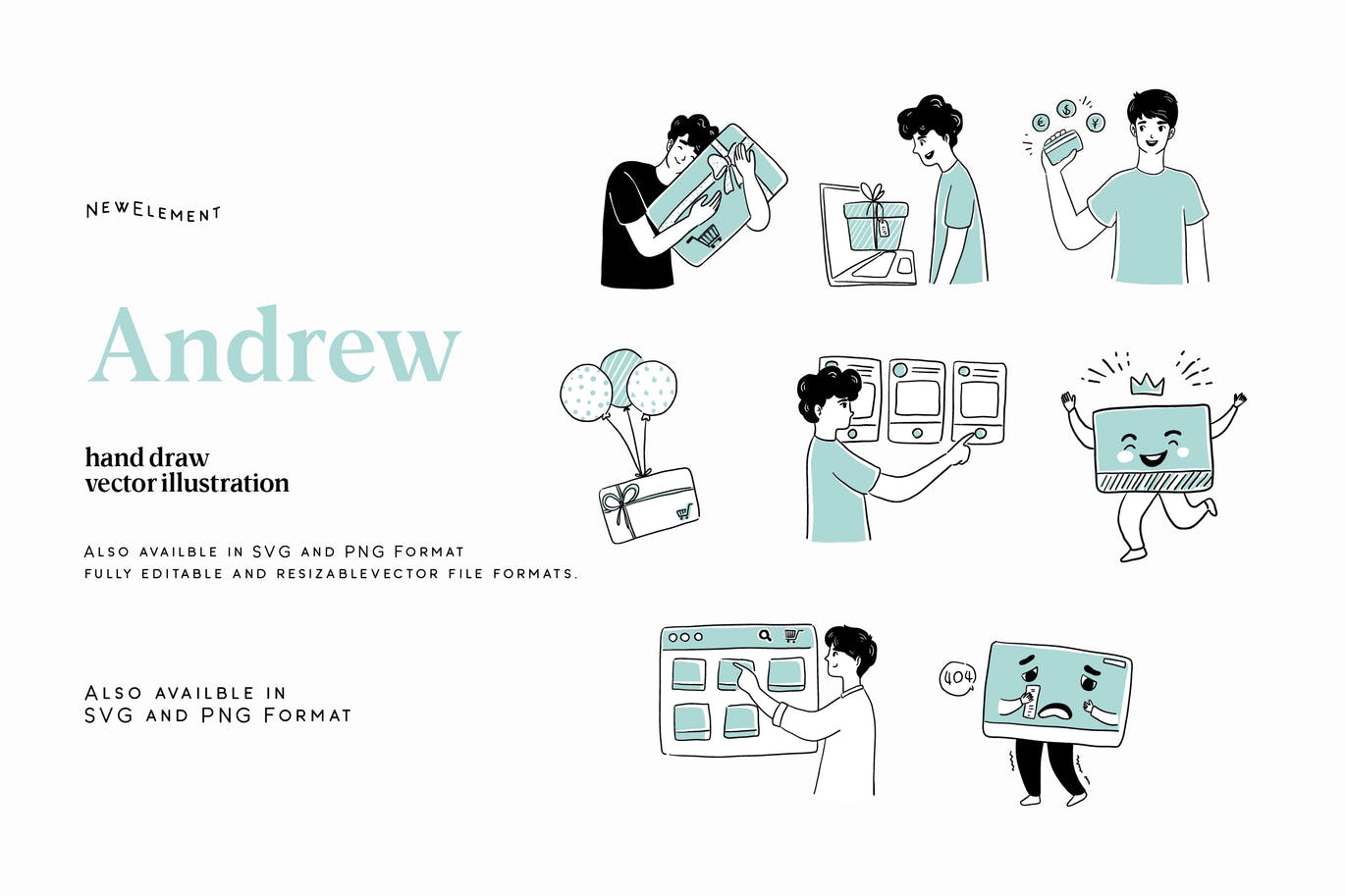 还提供 SVG 和 PNG 格式(即用型)完全可编辑和可调整大小的矢量文件格式。