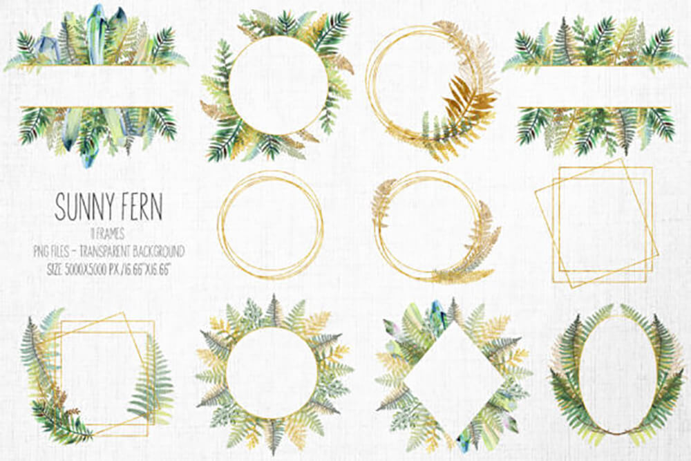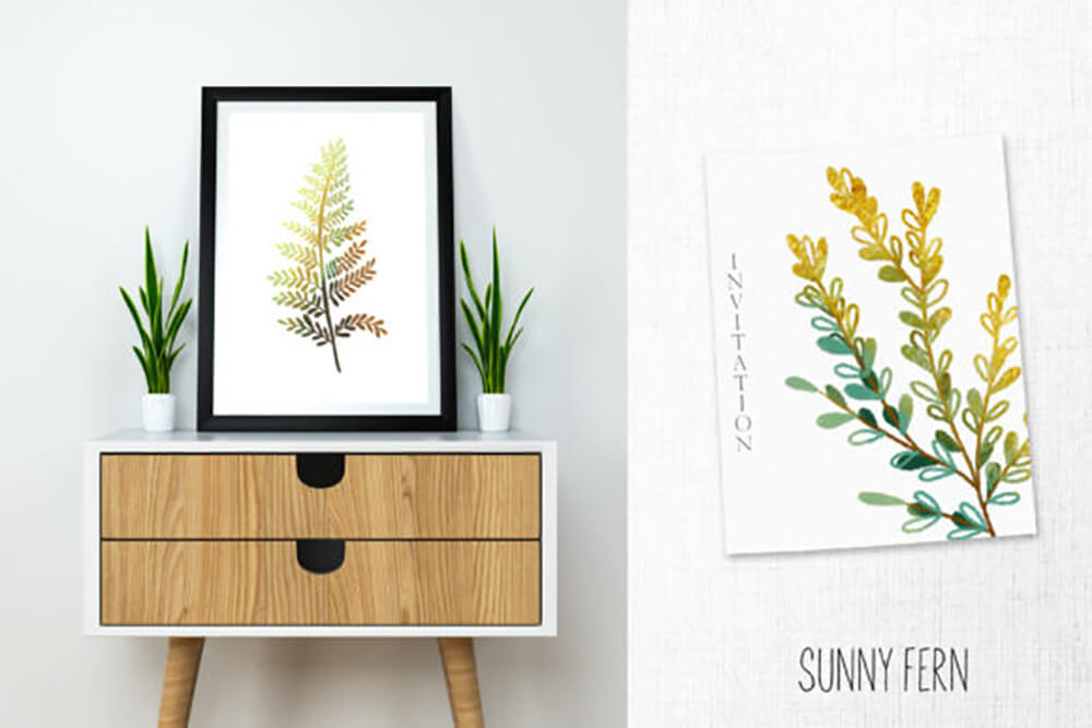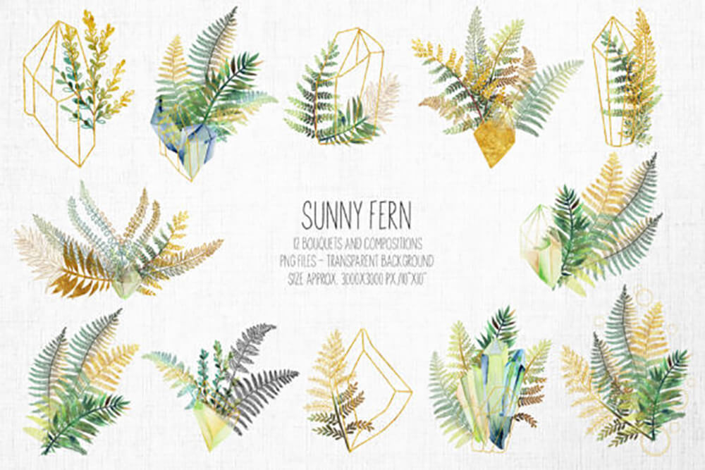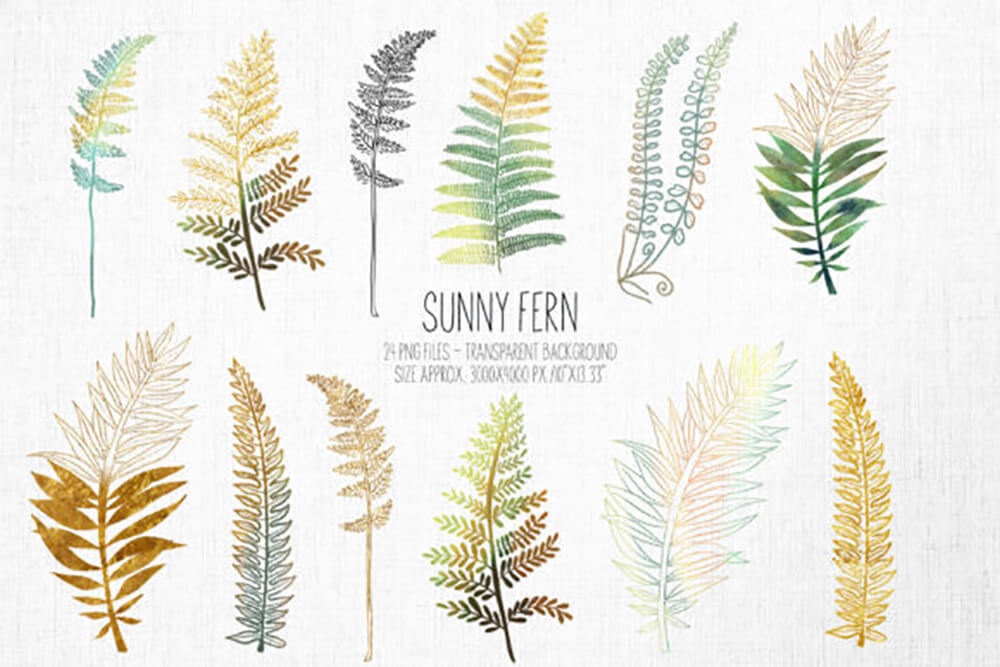 阳光蕨类植物插画素材,可用于请柬、婚礼设计、标志、墙贴、工业设计、网站、DIY 作品、横幅、海报、标签、织物印刷(T 恤、背包、亚麻布和其他纺织品设计)、卡片等。