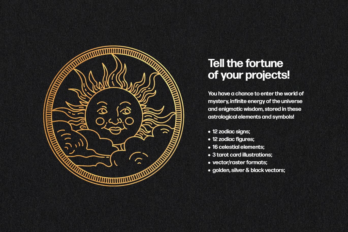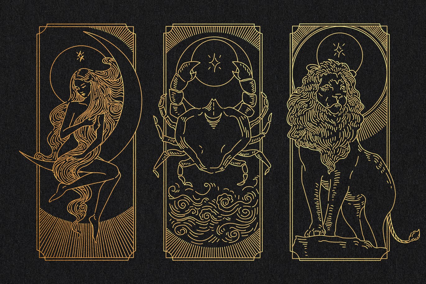 这次分享的是,时尚高端专业优雅生肖十二星座塔罗牌矢量插画大集合-EPS,PNG,十二个十二生肖和十二个插图版本,分别描绘了华丽的女神和优雅的生物。没有一些其他装饰物,场景就不会包罗万象:16种天体元素,包括开始,迷人的眼睛,月亮,太阳等。有什么比塔罗牌更有精神的?没错,我们提供了3幅塔罗牌垂直插图,看起来像是彩色玻璃窗的情节。所有的零碎都有矢量和栅格格式。要考虑的一件事:光栅图像有金色,银色和黑色。该工具包的创意无限可能:数字艺术作品(包括品牌作品,徽标,网站装饰)和实物物品,如海报,T恤,贴纸,纹身。