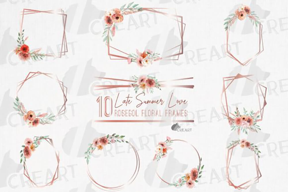 夏末之恋,珊瑚色和腮红粉色花卉框架模板。水彩的预制的邀请花束。带有水彩花束的几何婚礼框架带有多种不同的设计元素。您可以使用它们来打扮派对,请柬,服装,卡片,贴纸,网页设计,花墙装饰,婚礼装饰,创建礼物,杯子,升华和剪贴簿项目。可以调整所有矢量对象的大小,而不会造成任何质量损失,可以更改颜色。