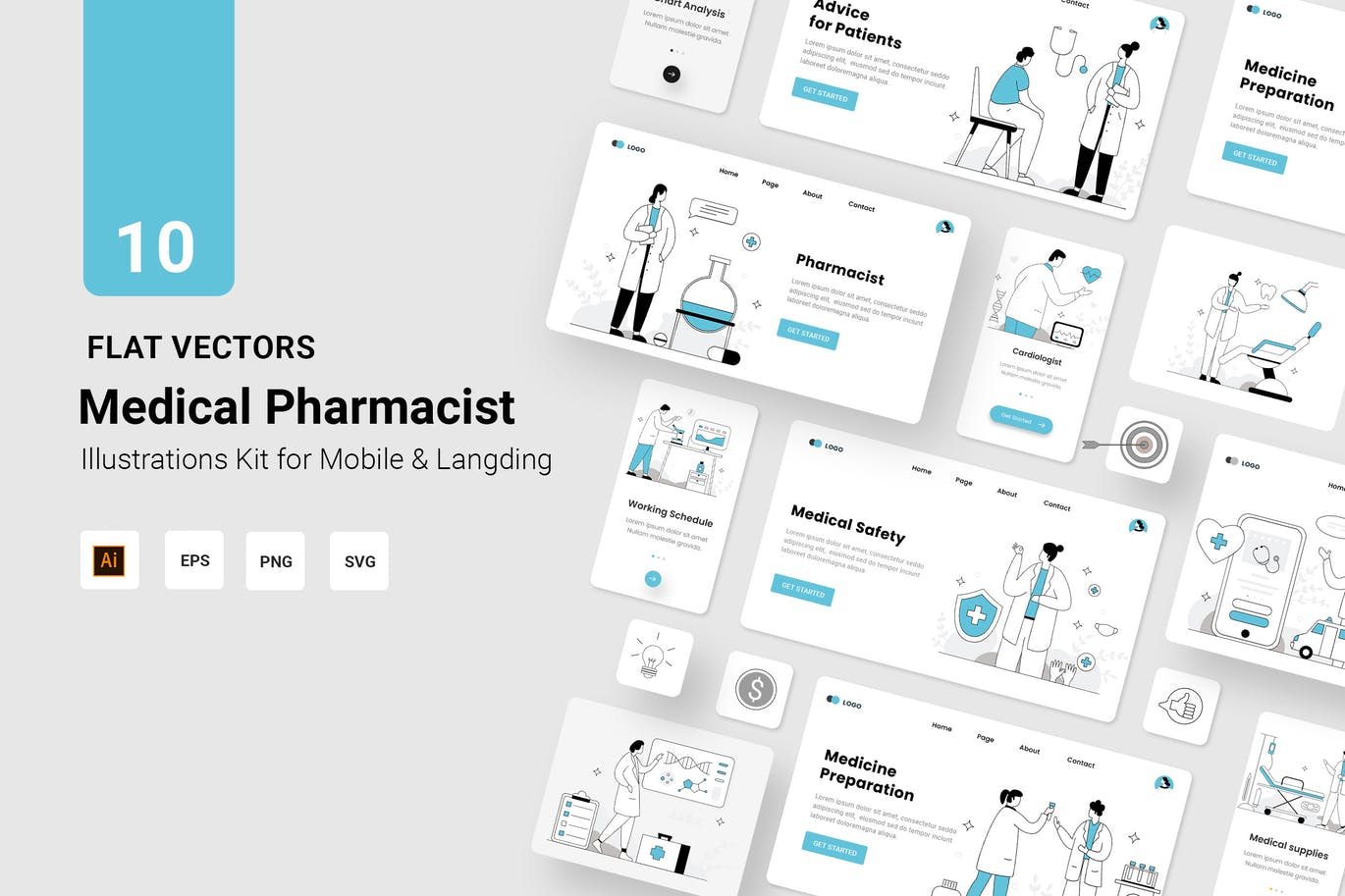 这次老不湿分享的是,时尚高端简约医学医院医生健康UI插画banner着陆页海报设计模板-AI,EPS,Web和移动设计的10个独特线条插图,可帮助您创建精美的设计。