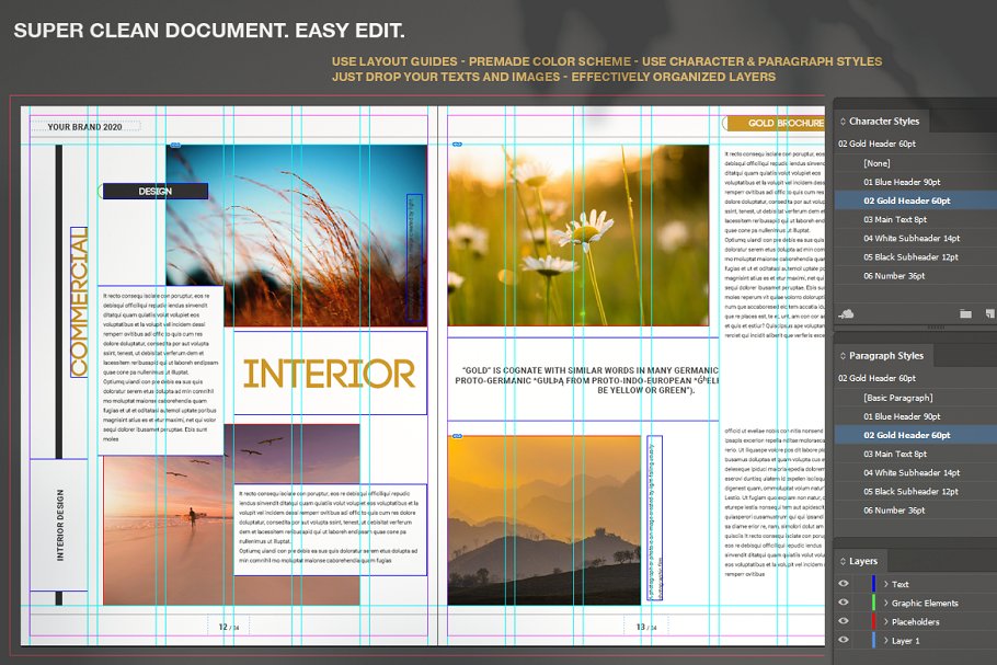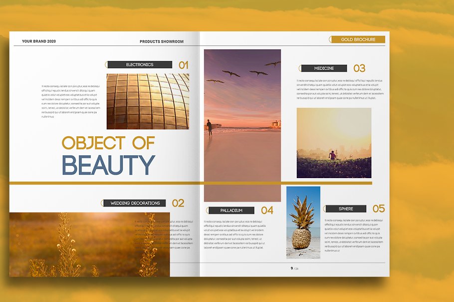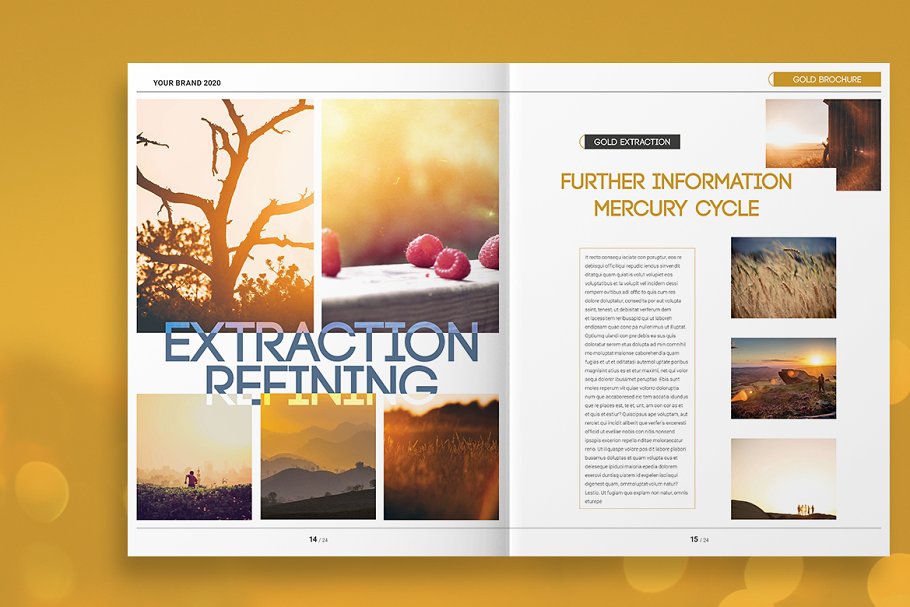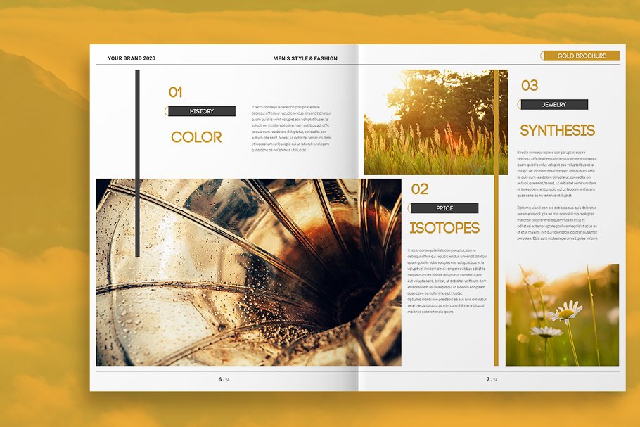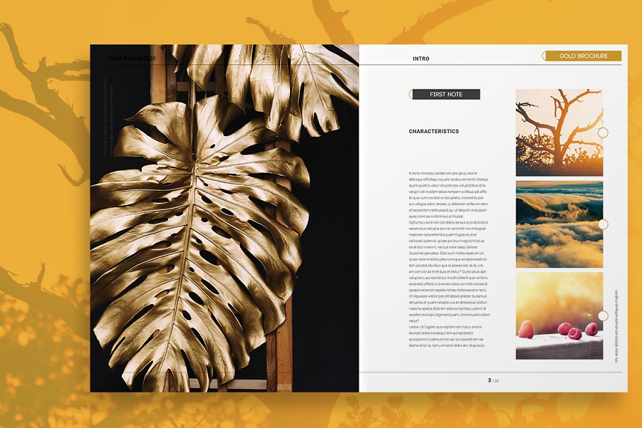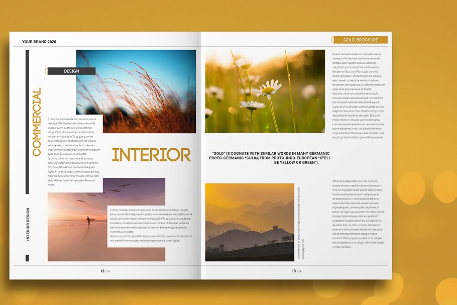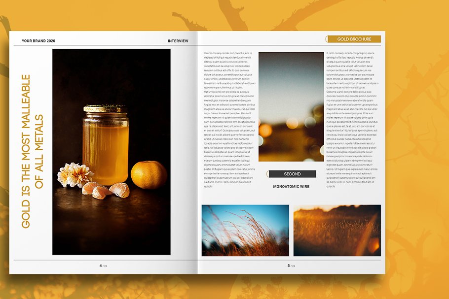 时尚金色主题企业宣传杂志画册模板,您可以将此模板用于任何行业,如时装、设计、摄影、艺术和商业项目。该模板具有极简的设计,包含了很多适合各种项目的页面布局。布局可以轻松混合和匹配,只需使用供应设计中的元素即可创建自己独特的布局。