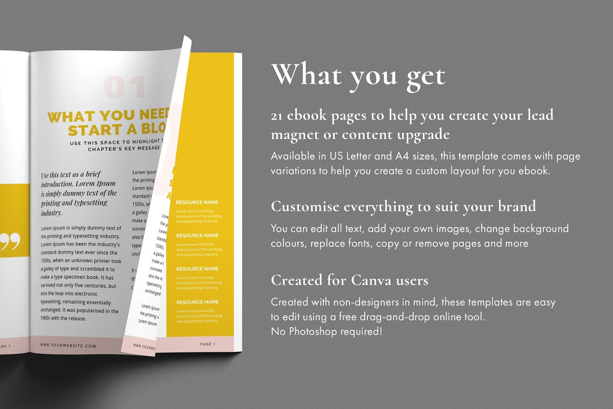 这是一款21页的多用途Canva电子书模板,提供美国信纸和A4尺寸。适合博主、课程创作者和企业家使用。推广您的课程,发展您的在线业务。使用直观的拖放界面添加文本和图像或更改字体和颜色。从多个页面变体中进行选择,复制您需要的页面,并删除您不需要创建无限电子书设计的页面。
