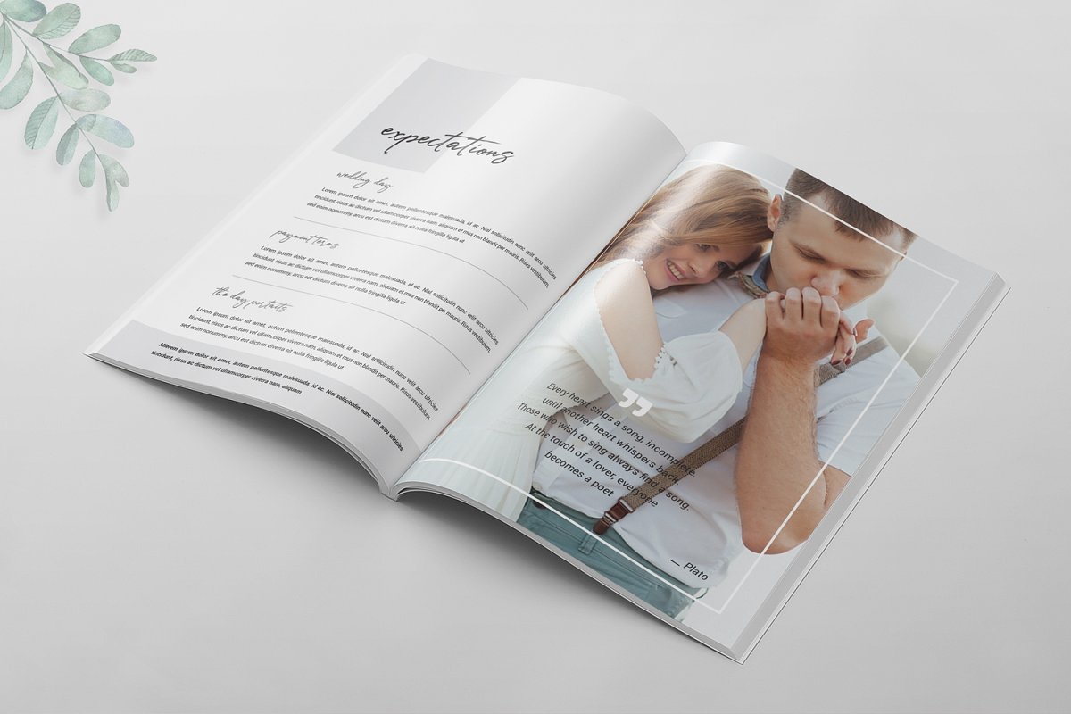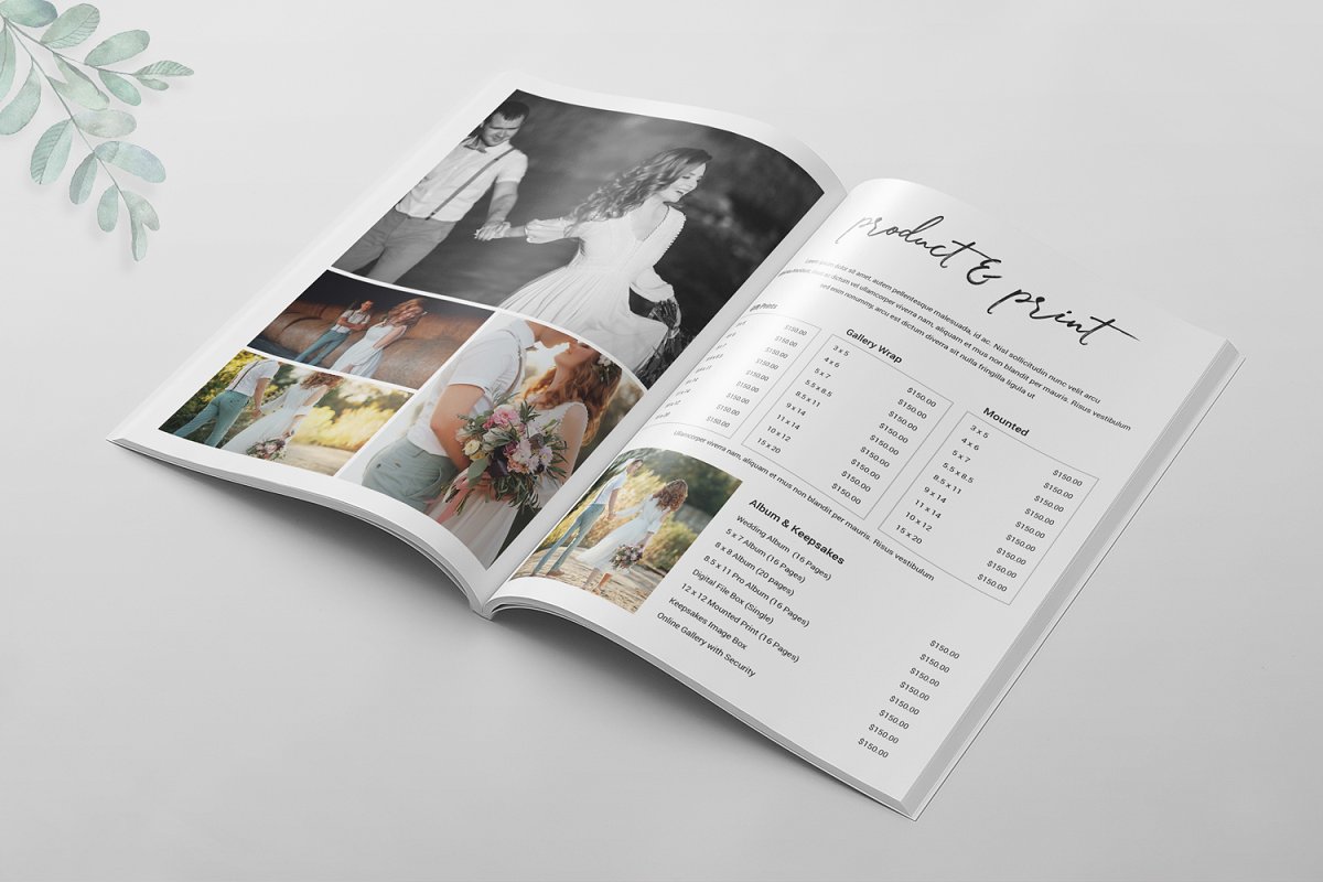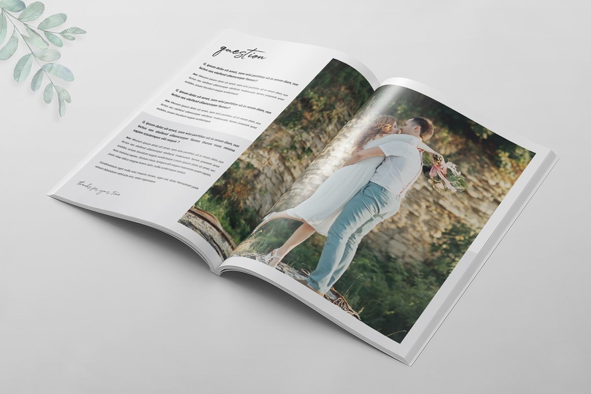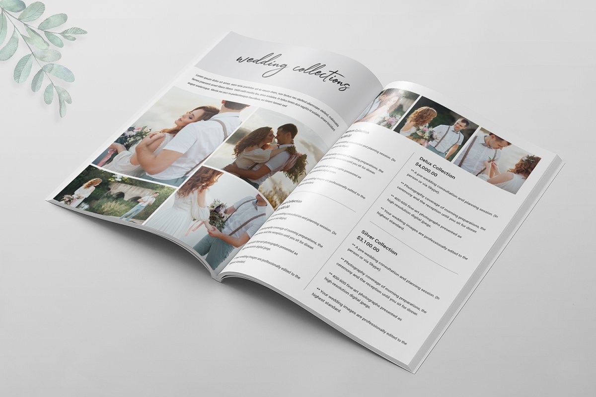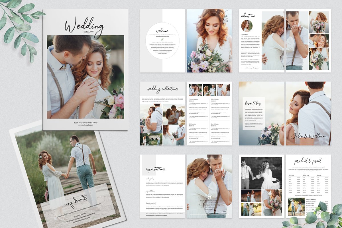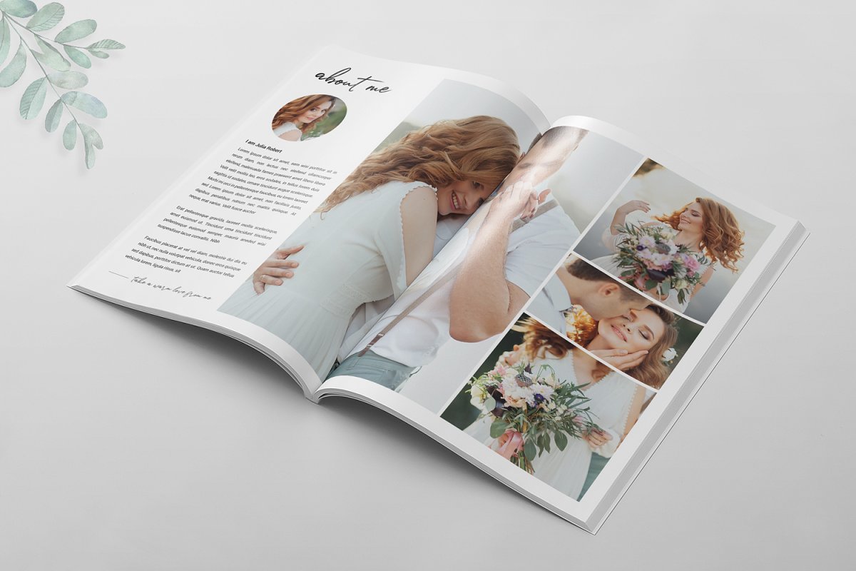 16页婚纱摄影杂志模板,可以帮助提供有关婚礼的信息以及婚礼成功完成所需的事情。它是展示您的作品集或摄影的完美模板。所有文本、颜色、图像、字体都是用户友好的,并且非常容易使用Adobe Photoshop进行自定义。