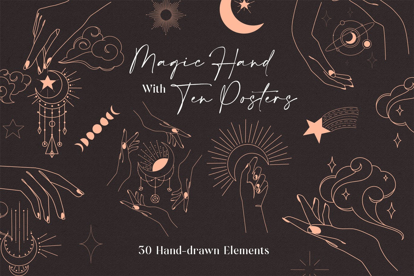 这次分享的是,魔术手势艺术矢量插画集合-AI,SVG,PNG,EPS,最适用于墙壁艺术,装饰框架,海报,杂志模板,社交媒体模板,徽标,名片,工艺品和您拥有的其他创意项目。极高的分辨率!