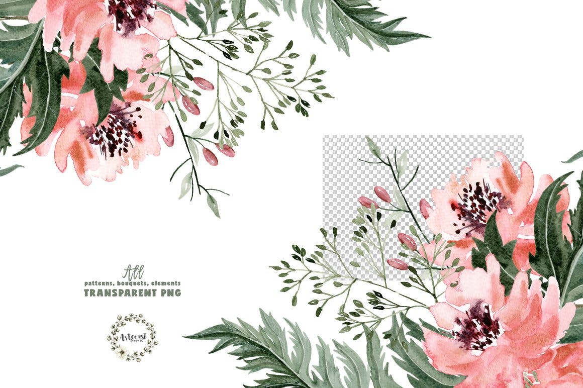 20透明的PNG水彩bouqets。