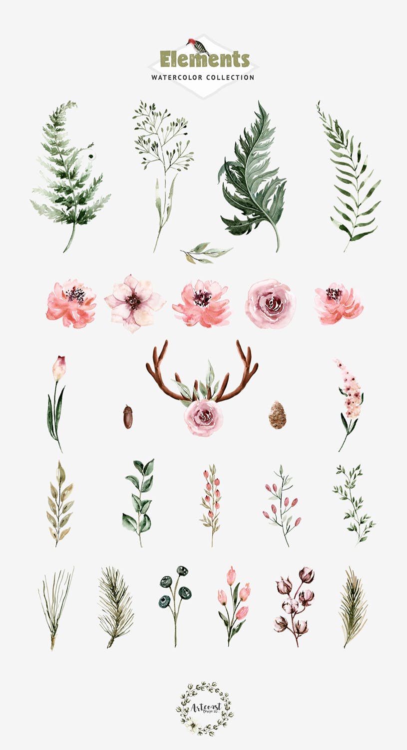 这次分享的是,时尚高端简约清新手绘水彩风格森林背景底纹插画大集合,尘土飞扬的玫瑰色营造出一种兴奋和丰富的气氛。细腻的树枝和树叶曲折彰显花朵的美感。别致而奢华,结合花朵的自然美。