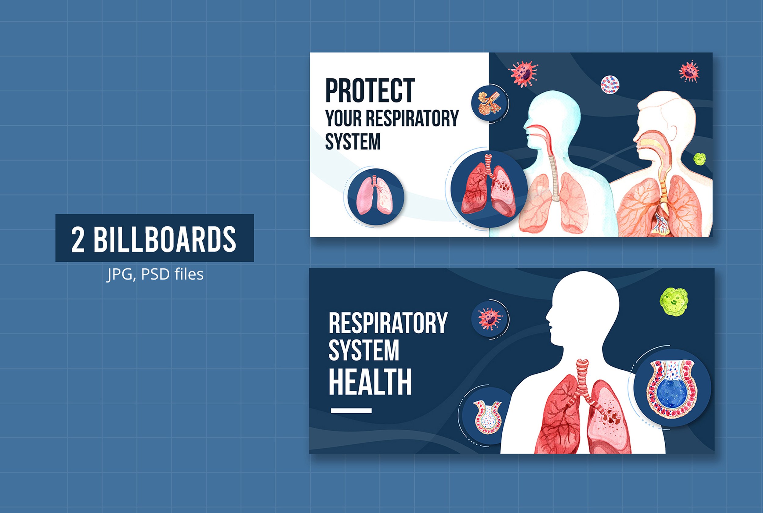 人体呼吸系统水彩插画素材,为获得最佳质量,所有元素均为高分辨率,300 DPI,所有PNG文件均具有透明背景。