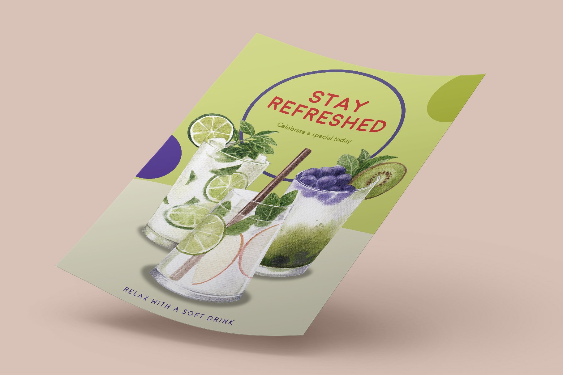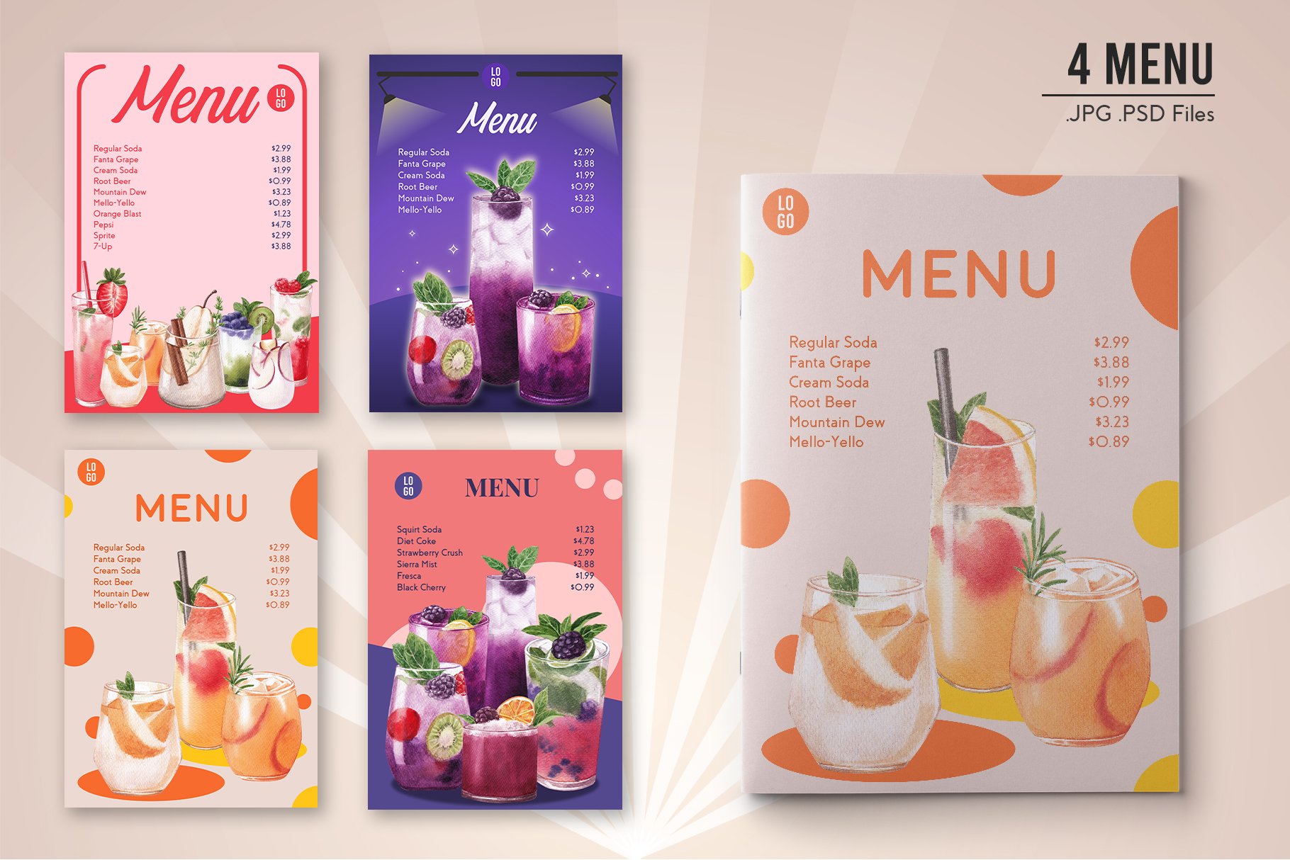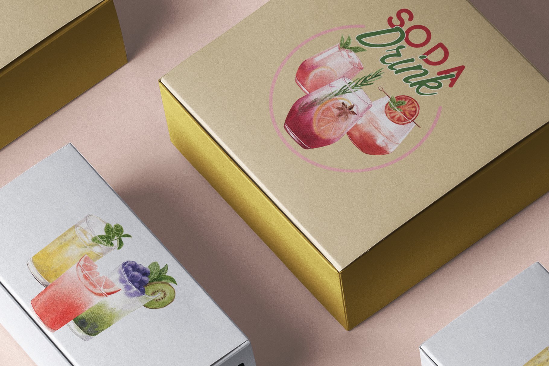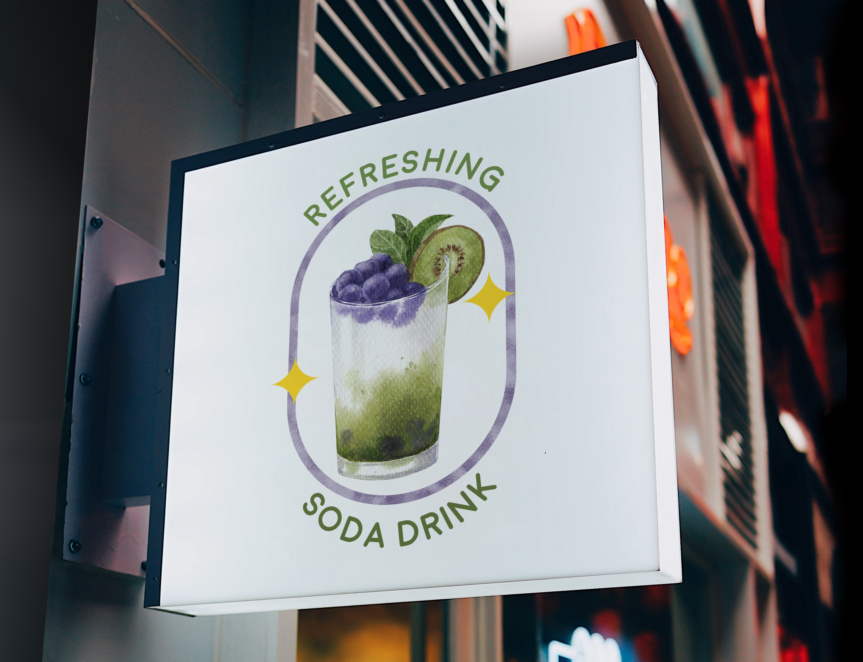 该混合水果汽水水彩插画集包含60个文件;为获得最佳质量,所有元素均为高分辨率300 DPI所有PNG文件均具有透明背景。包含海报、框架、徽标、图案等元素。