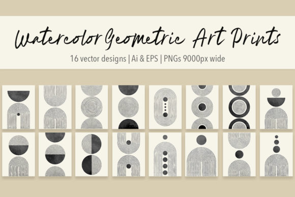 抽象水彩几何图案是一组以美丽的黑色,灰色和白色色调组成的16个矢量图像。这些艺术作品非常适合装饰您在家中或办公室中的任何空间!可用于所有壁画,固定/贺卡,设备/技术盒等按需打印应用!