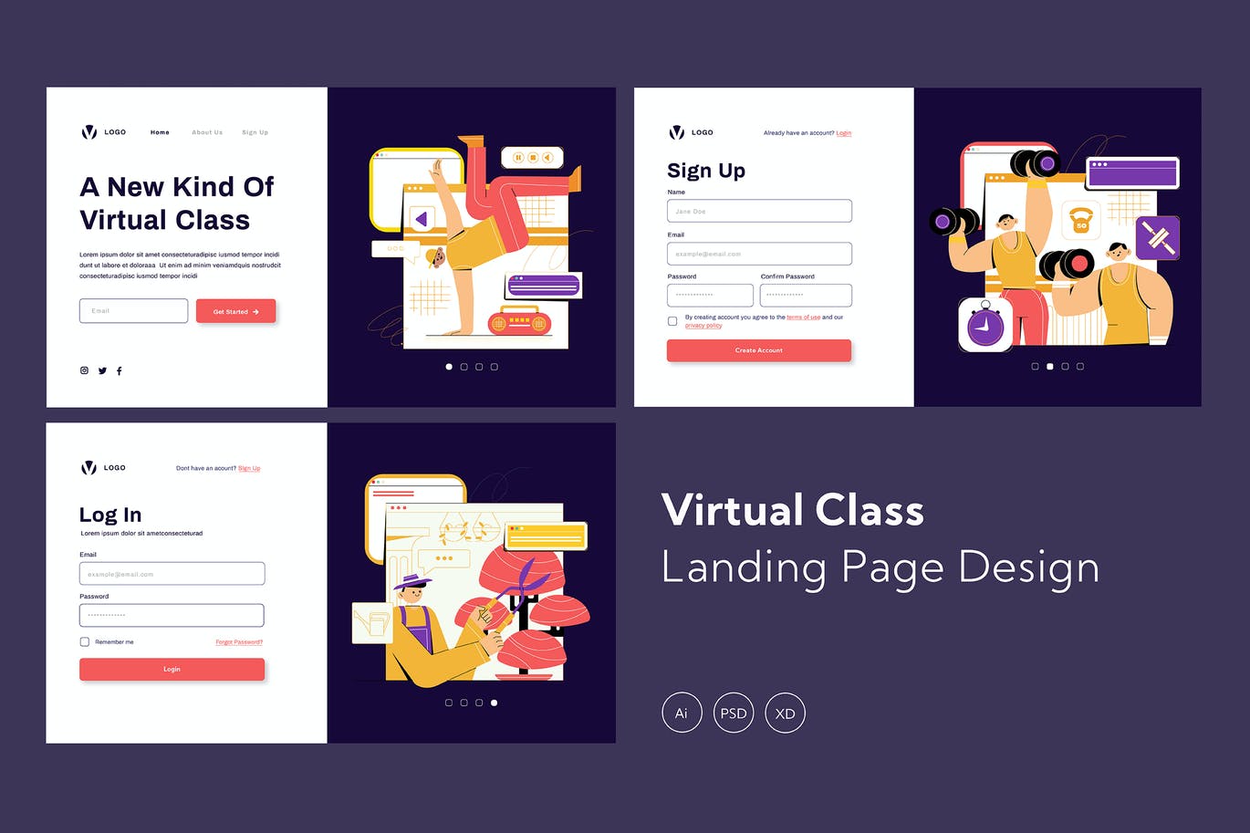 这次老不湿分享的是,高品质的网络在线教育banner海报矢量UI插画设计模板集合-AI,PSD,XD,送货服务登陆页面适合您的应用程序设计需求,此模板易于使用,并且可通过Sketch App进行编辑!通过另一种方式,您可以使用Adobe Illustrator编辑主要插图。