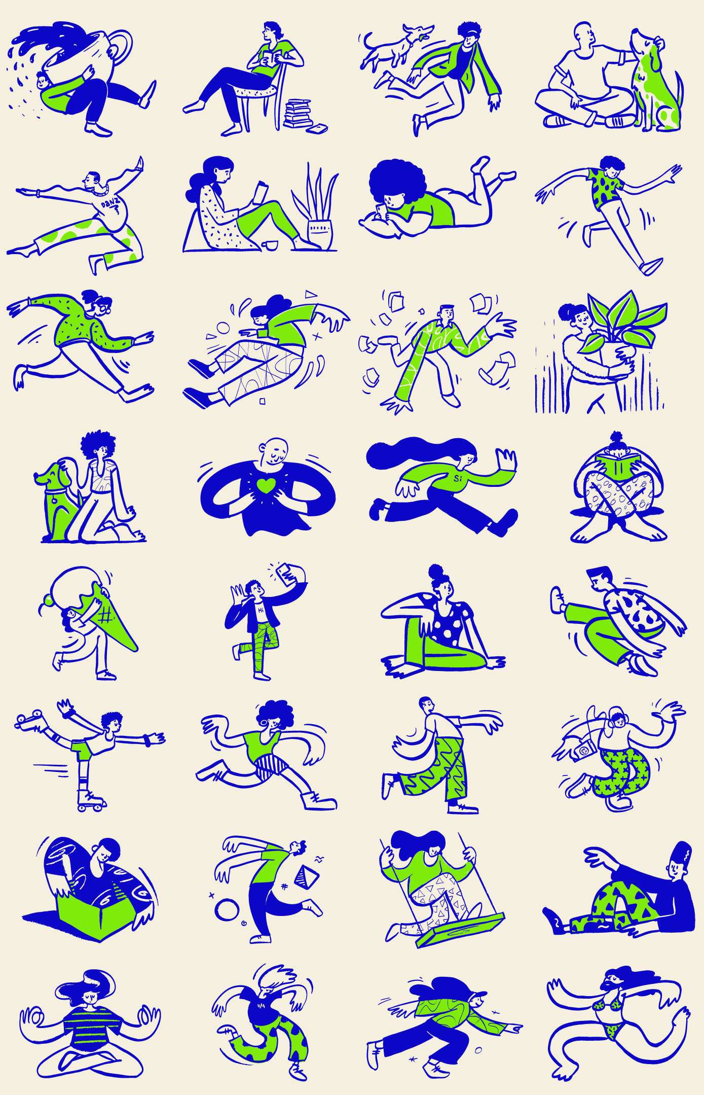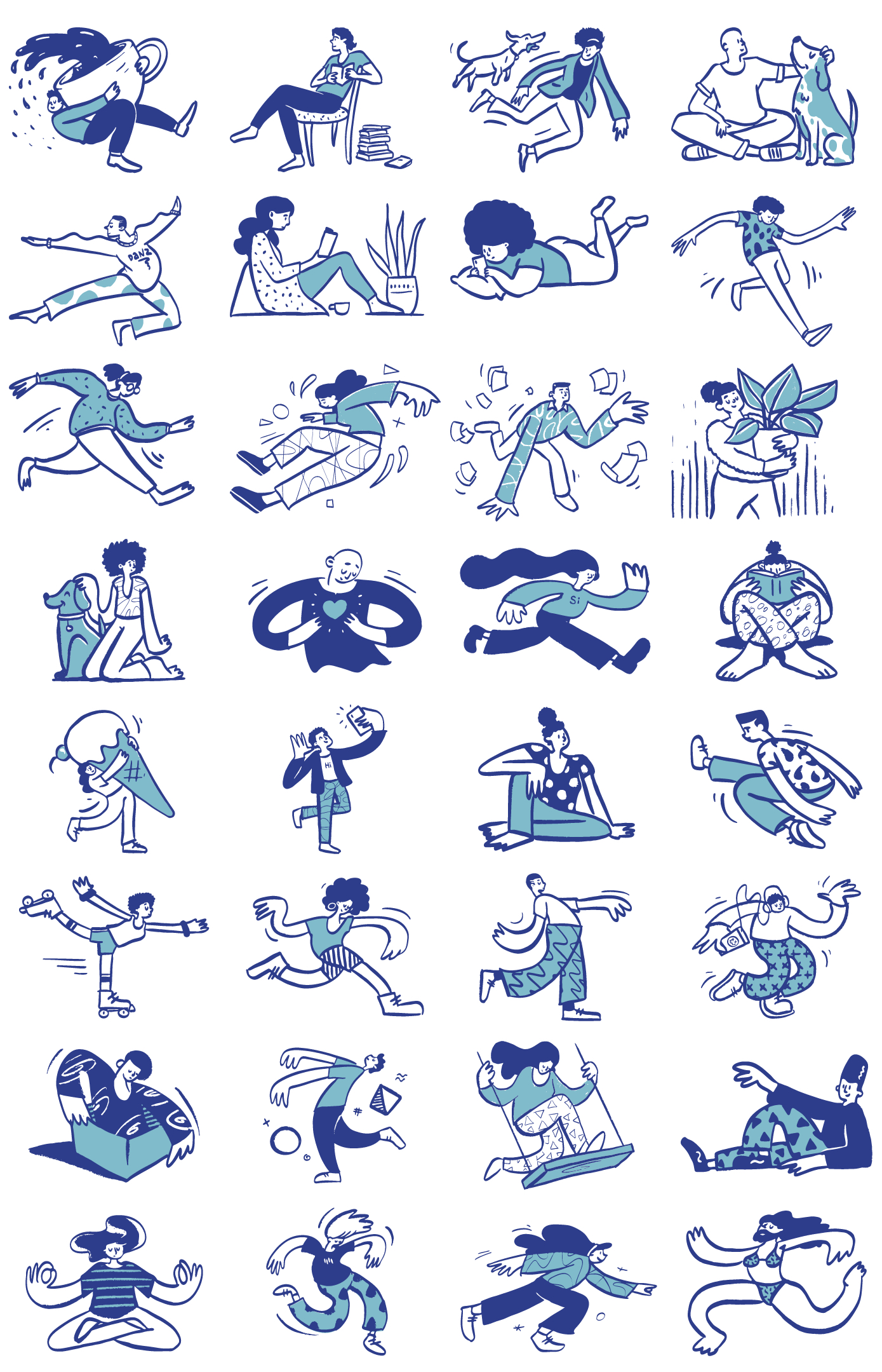 独自一人的各种生活场景的涂鸦素描插图,供个人或企业使用。
