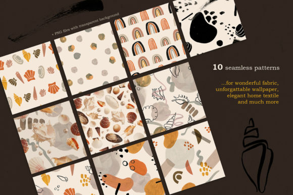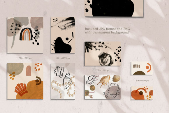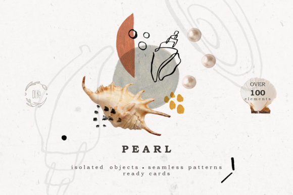 贝壳珍珠插画图形收藏集,在这个图形集合中,混合了丰富的色彩水粉纹理,单独的真实贝壳,可用于现代拼贴,简约的黑色形状和线性草图。它非常适合纺织品设计,文具,海报,社交网络设计,家居装饰等等。
