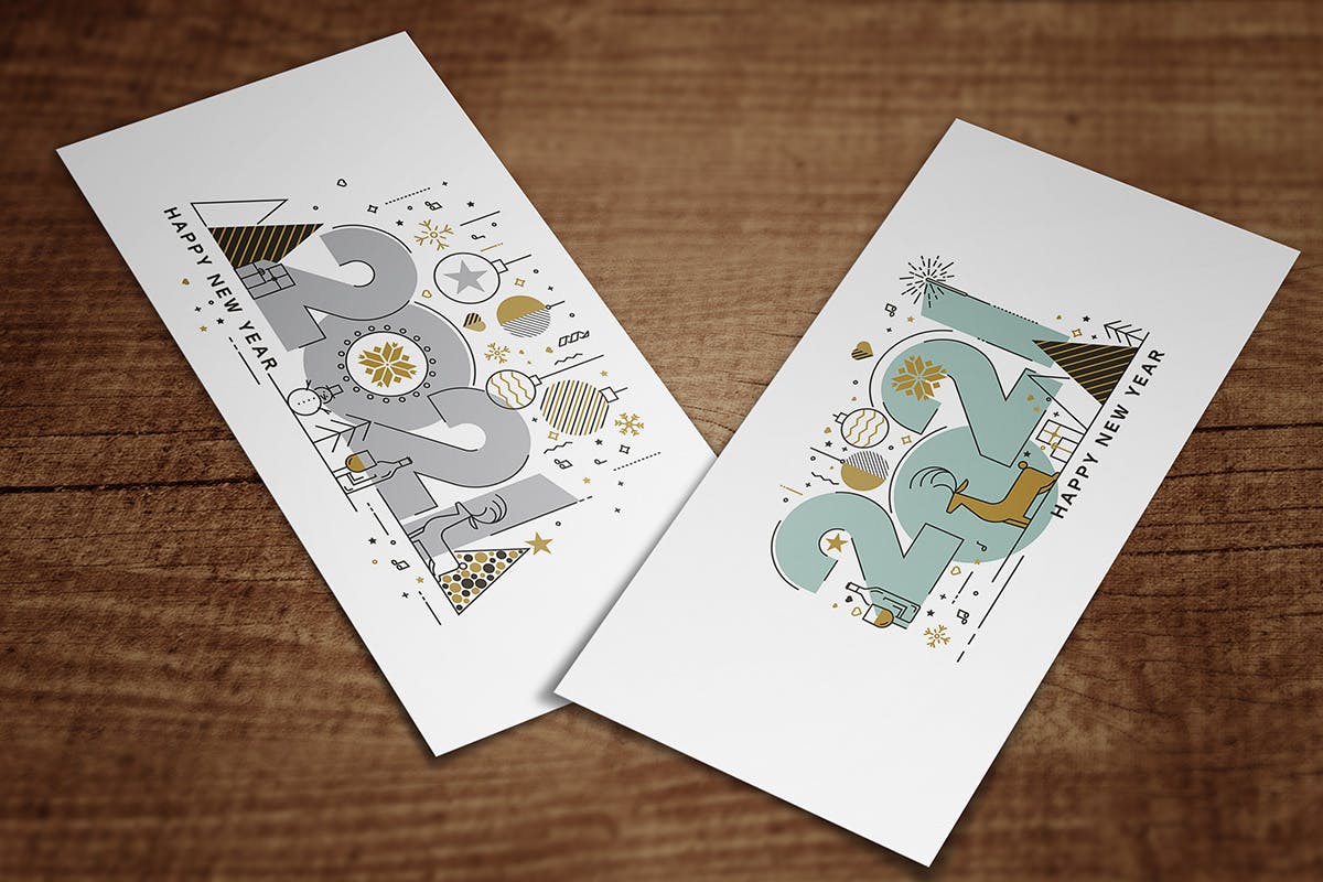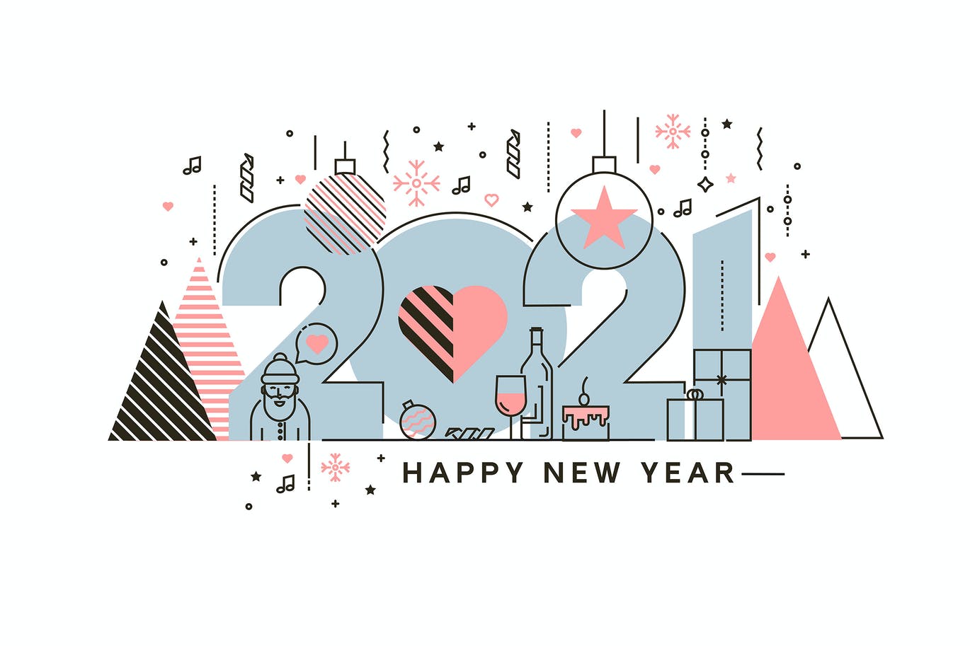这次老不湿分享的是,扁平化风格的2021新年圣诞节矢量插画banner海报着陆页设计模板-AI,EPS,JPG,PDF,PSD,新年快乐2021年和圣诞节快乐贺卡,时尚和简约卡或背景的扁薄颜色线概念。现代薄轮廓线设计。矢量Illustartion集