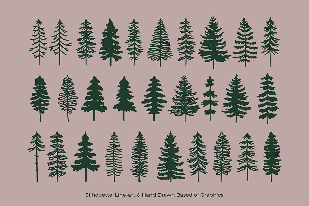 圣诞树插画素材,这个图形插图是100%的矢量文件。 手绘涂鸦线条艺术图形风格插图,适合用于您的圣诞和冬季庆祝活动、品牌、项目、图案、包装设计等等。