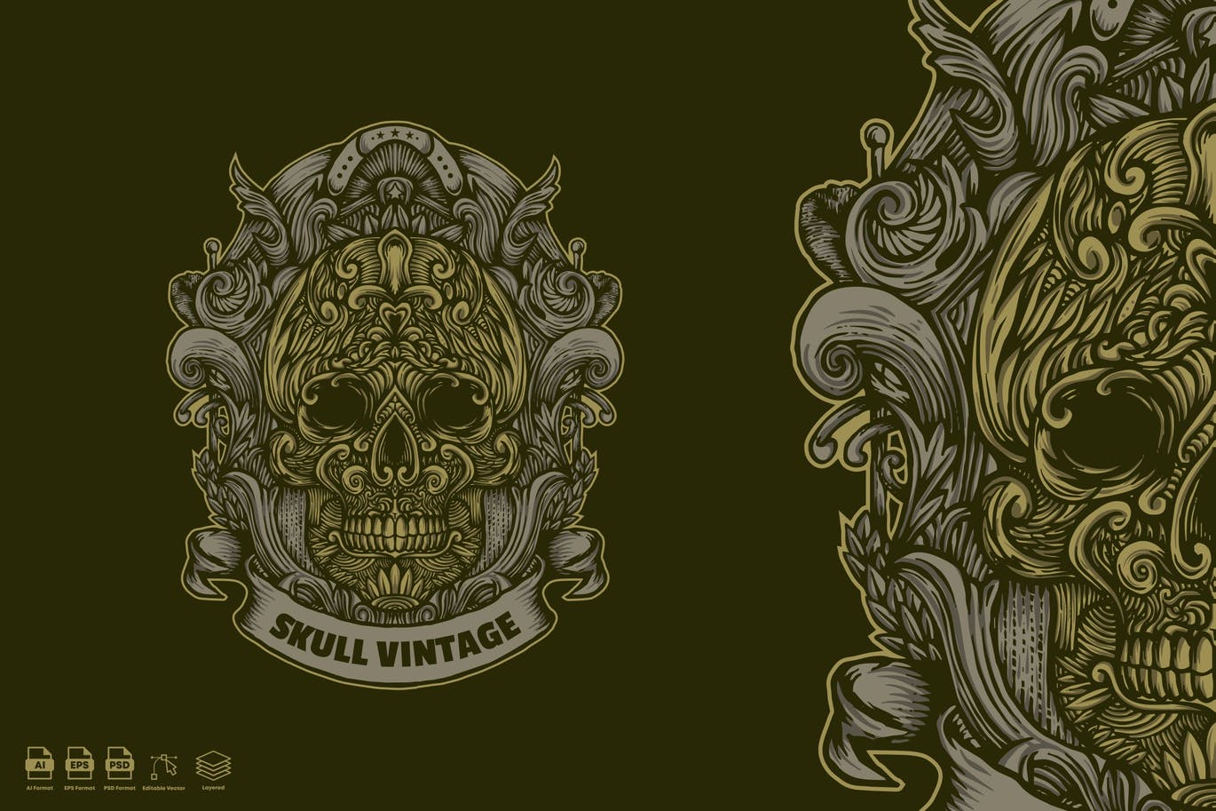 这次分享的是,骷髅头矢量插画设计模板-AI,EPS,JPG,PDF,PNG,PSD,头骨复古。手绘详细的矢量设计在优良的品质和详细。各种尺寸的矢量图形,而不会损失质量。