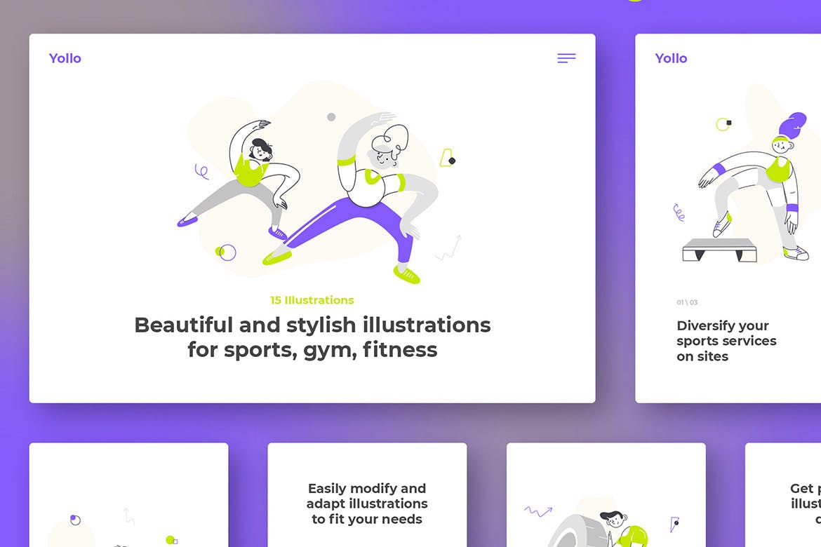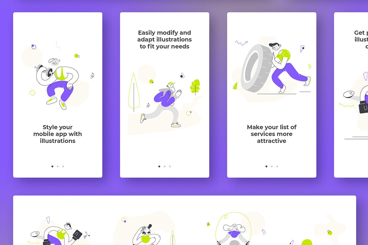 用时尚的运动插图装饰你的网站或应用程序。本系列非常适合运动中心、健身馆或任何从事体育运动或推广类似服务的公司。简单而简单的改编将帮助您调整插图以适应您的个人风格和颜色。