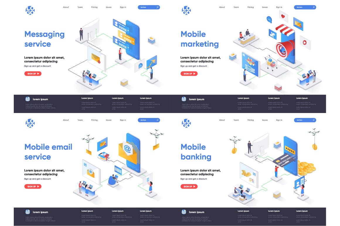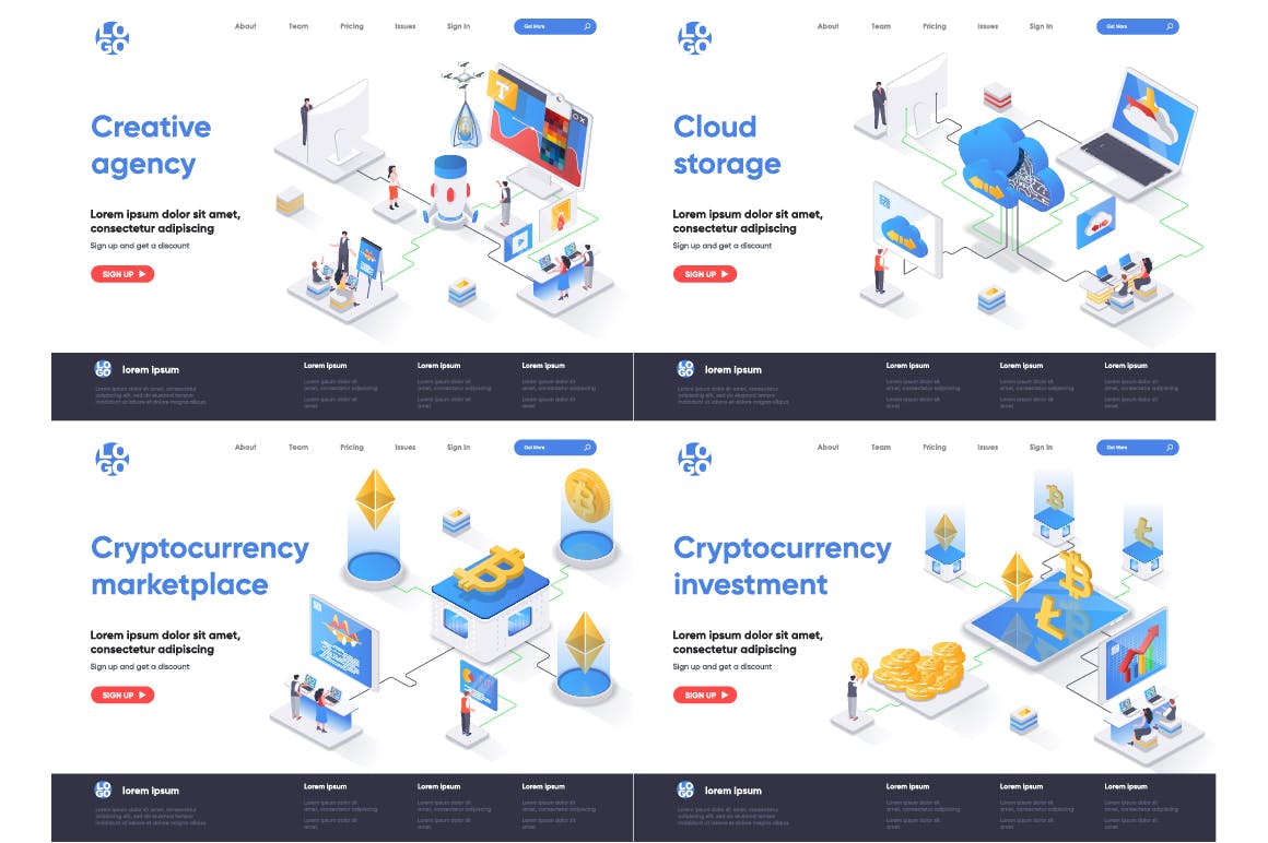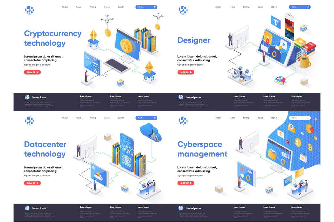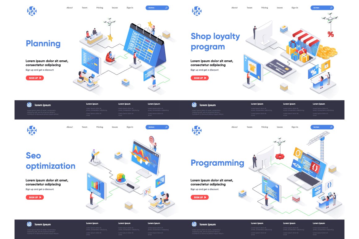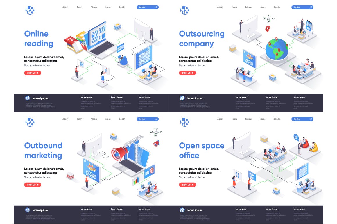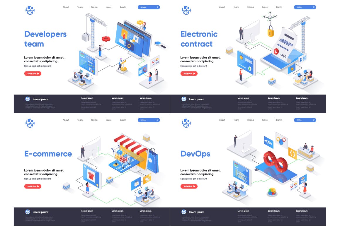 这次老不湿分享的是,2.5D等轴等距3D立体banner着陆页UI插画设计模板集合-AI,EPS,JPG,PNG,PDF,SVG,现代平面等距设计概念的集合。着陆页模板。针对web和图形设计的概念矢量图。人物角色情况创建者套件。可以使用矢量插图适用于cms,引导程序,主题,网页,移动,英雄形象,ui和ux开发,页眉或页脚的网站插图。