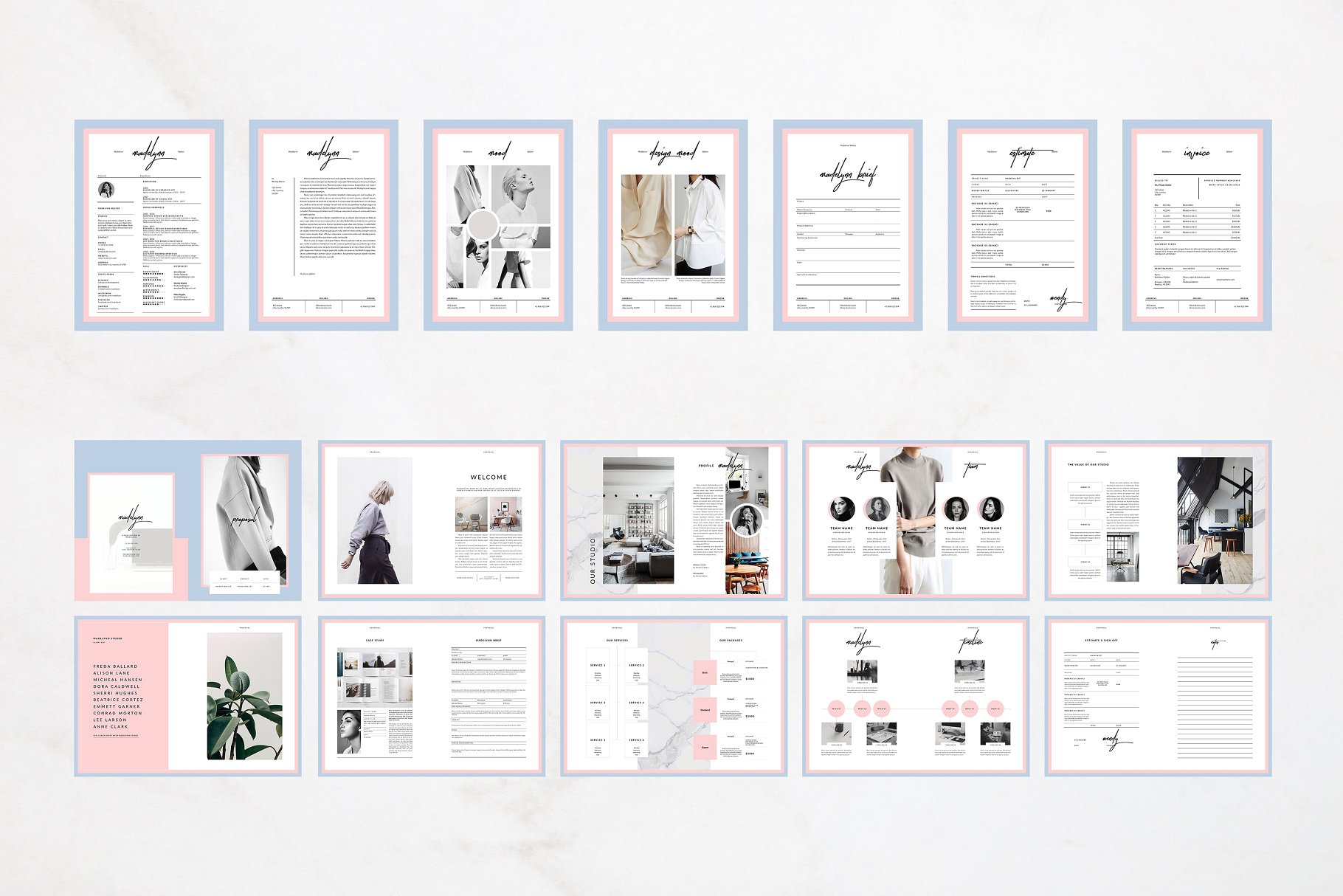 Madelynn Pitch Pack包括使用Adobe Indesign制作的提案和其他模板,以简化与客户的业务往来。这个包有8个模板,具有相同的简洁和极简主义的布局主题。一个20页的设计方案模板和其他7个小饰品有两种尺寸, 标准尺寸A4和美国信件大小的变化和准备打印。