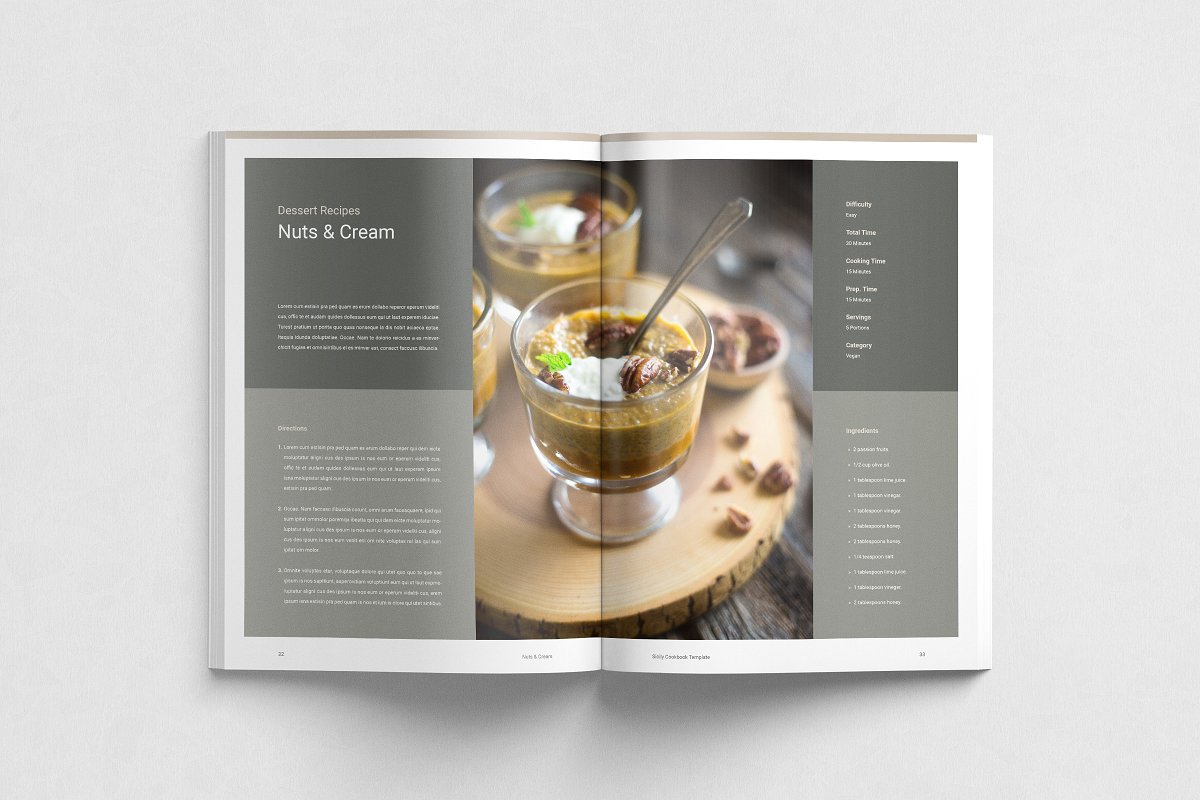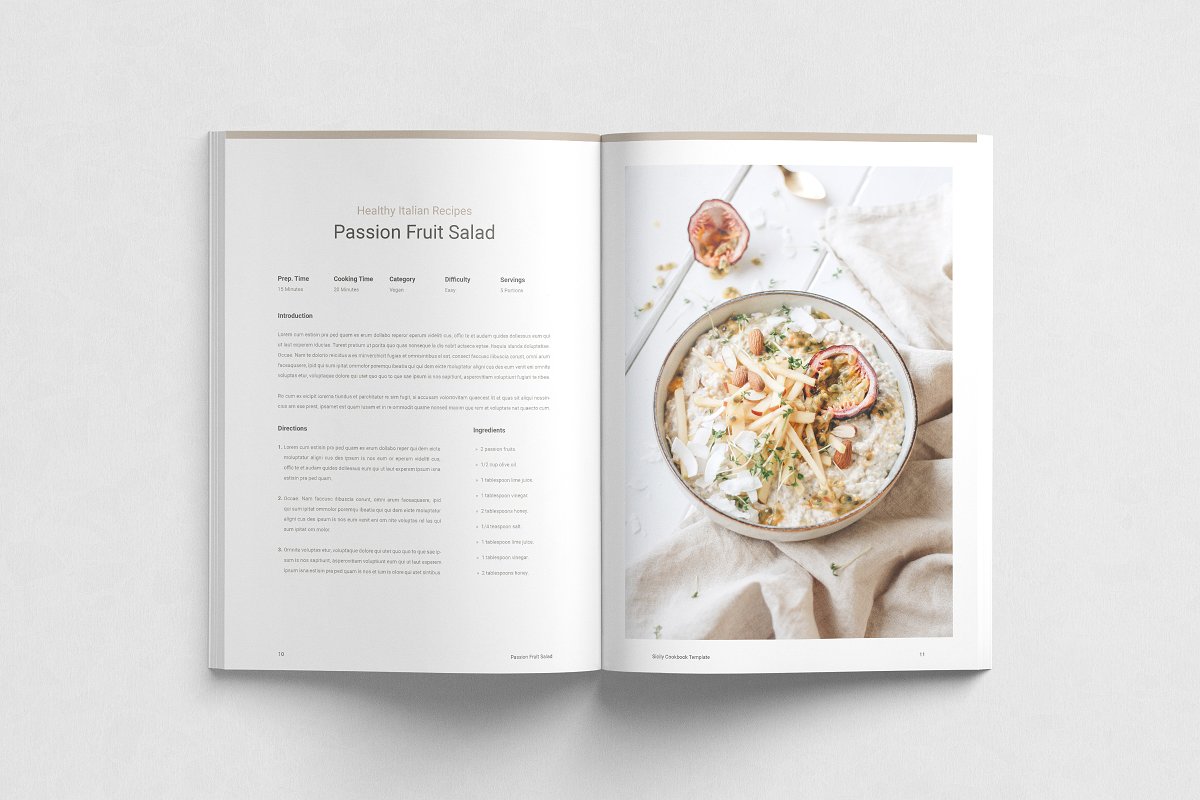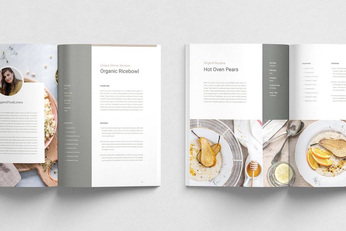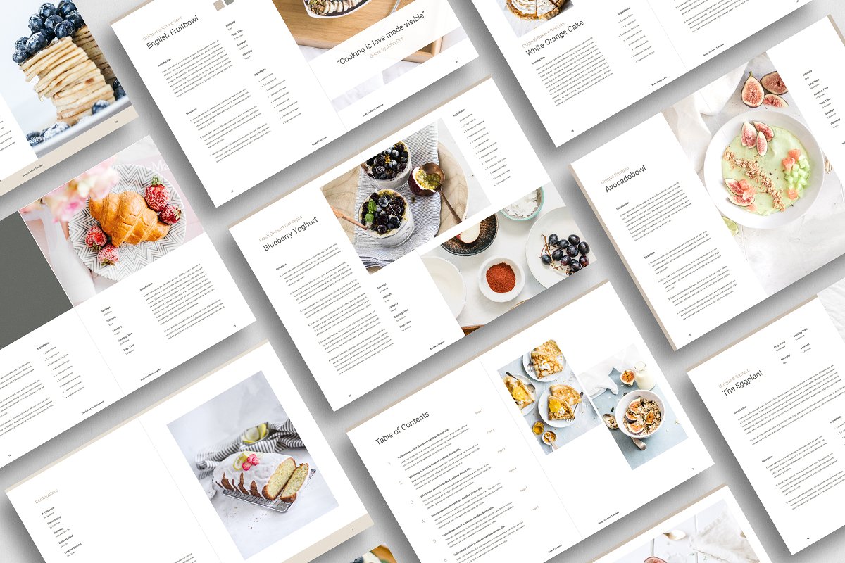 这是一款优雅的食谱模板。此模板有A4和美国信纸尺寸。您可以使用Adobe Indesign自定义,添加和删除每个页面以满足您自己的需求。下载包含IDML文件,带出血,段落样式,单独的图层和免费字体的链接。使用此模板,您可以以时尚的方式保存任意数量的食谱!