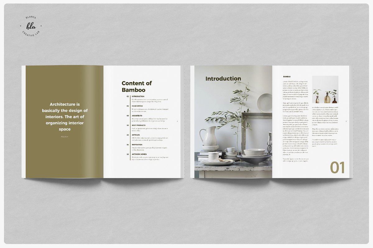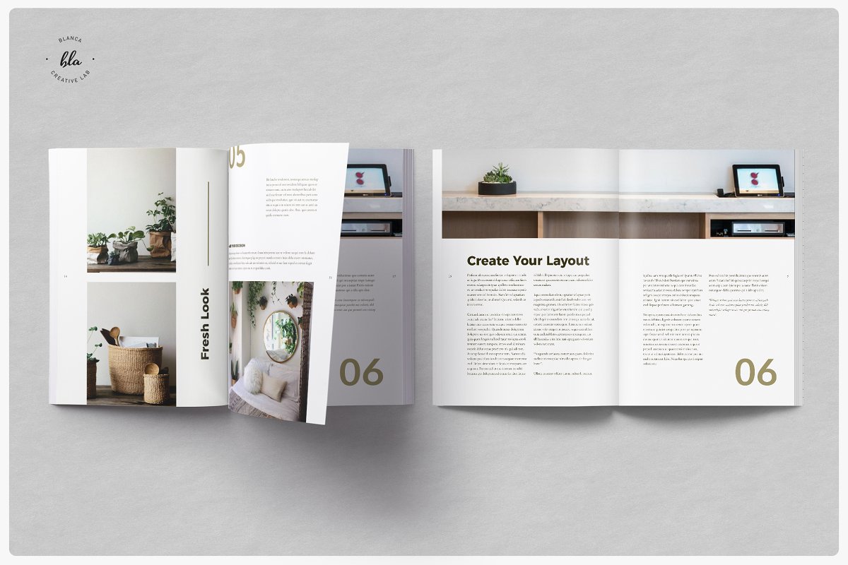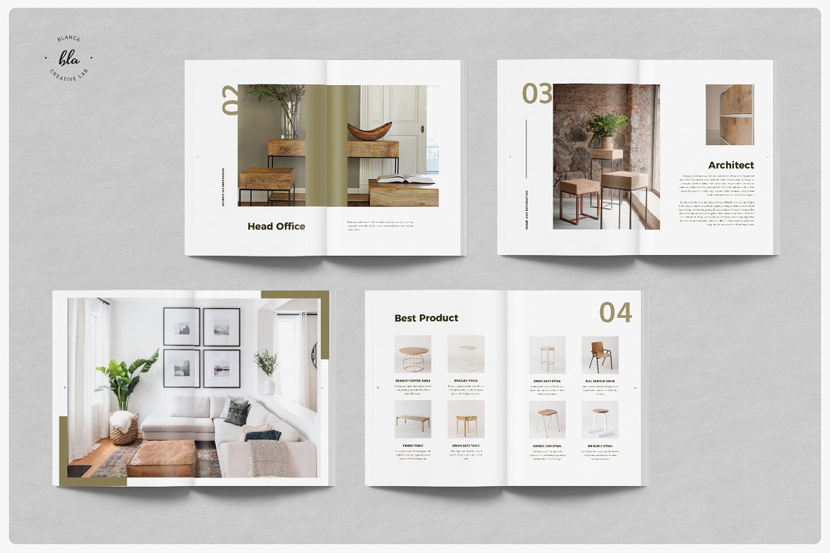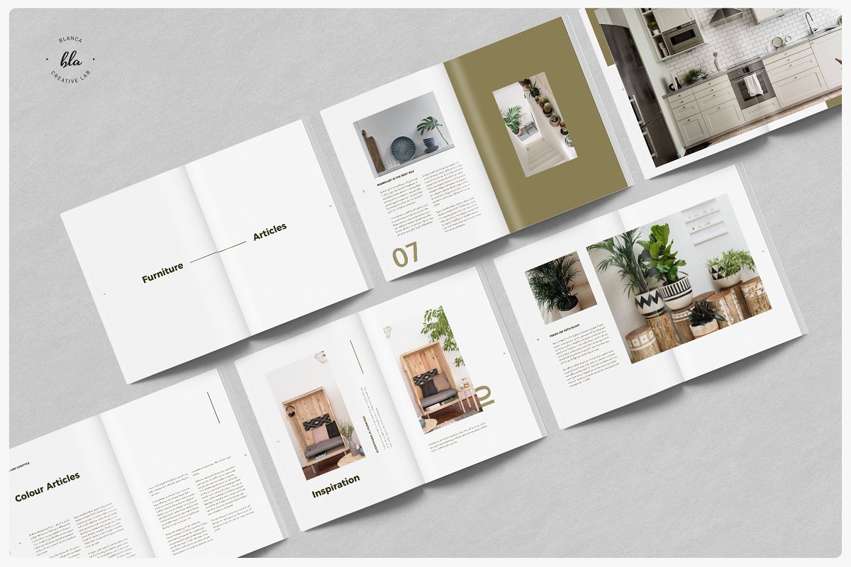绿色植物家具装饰图册设计模板,具有分层图像,醒目的图形元素和闪烁的色彩。布局极简,间隔精美,优雅。
